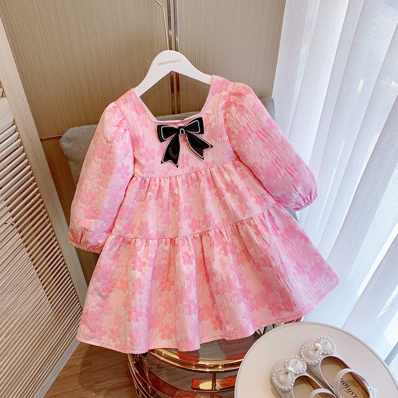 Лонгслив, осеннее платье, наряд маленькой принцессы с бантиком, детская юбка, популярно в интернете, в западном стиле, детская одежда