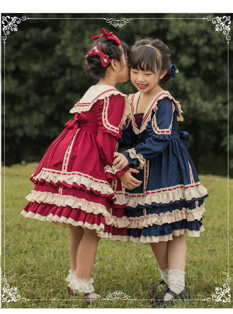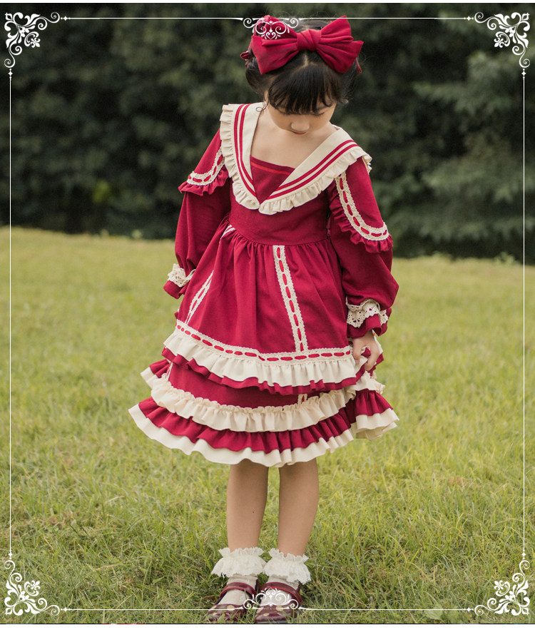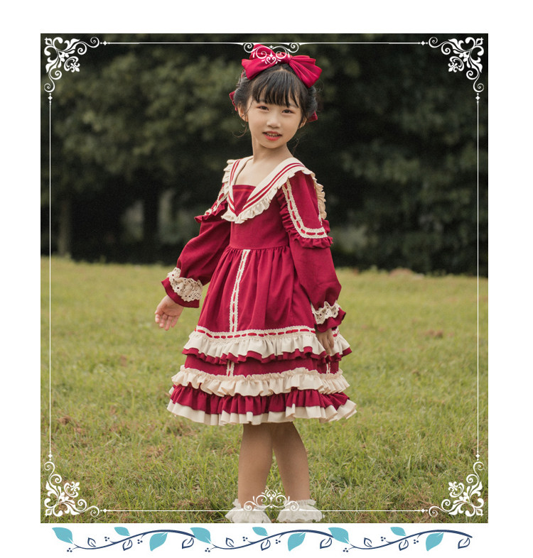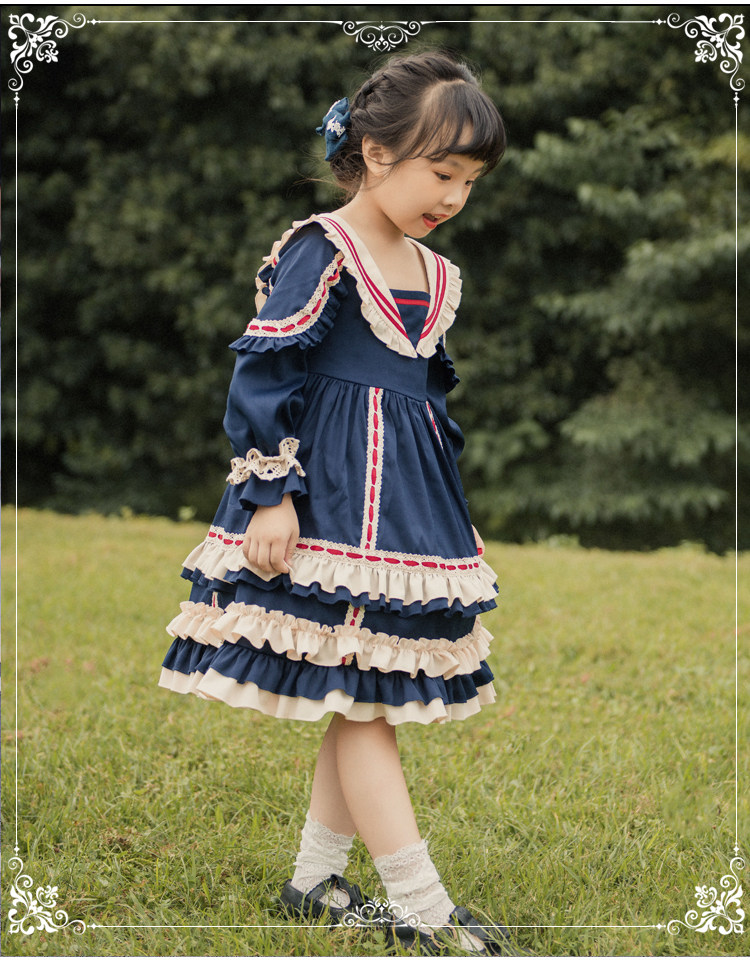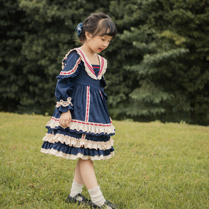 Оригинальный ретро наряд маленькой принцессы, стиль Лолита, детская одежда, Lolita OP, (в наличии на складе), высокая талия