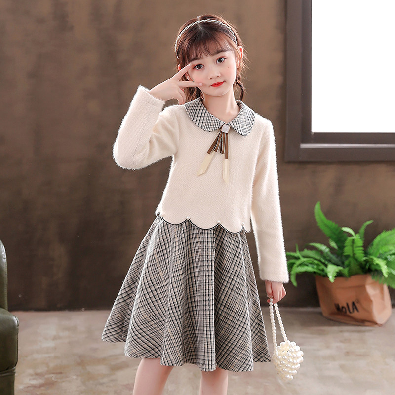 Демисезонное платье, детская юбка, утепленный наряд маленькой принцессы, коллекция 2021, детская одежда