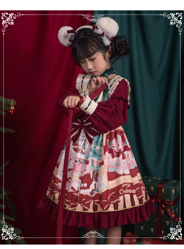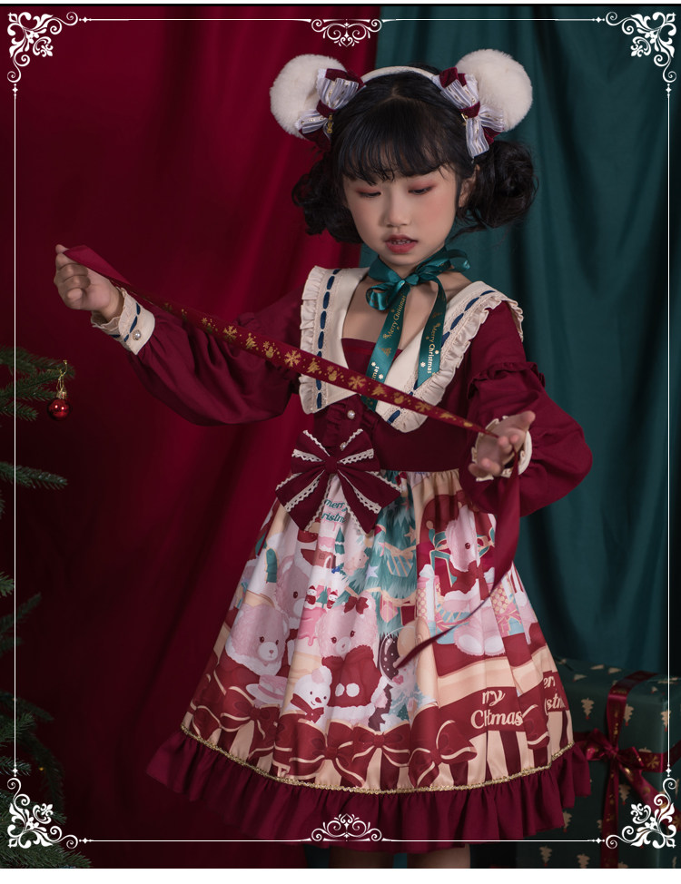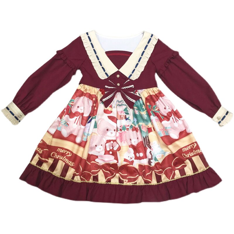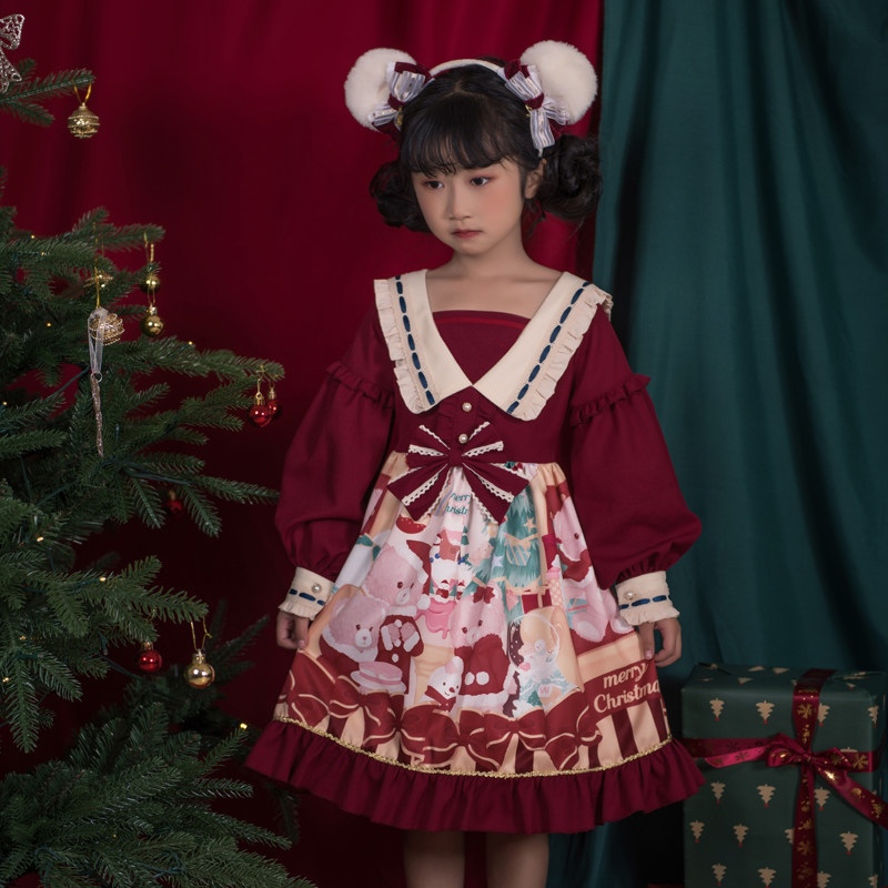 Оригинальное милое платье, с медвежатами, стиль Лолита, детская одежда