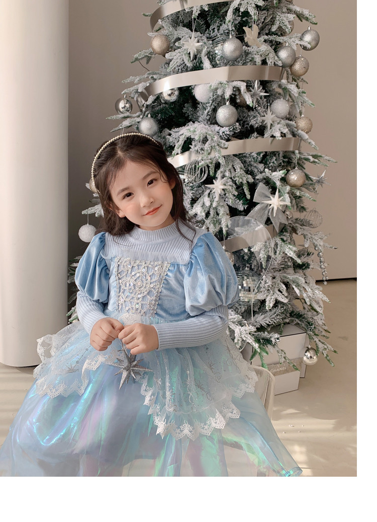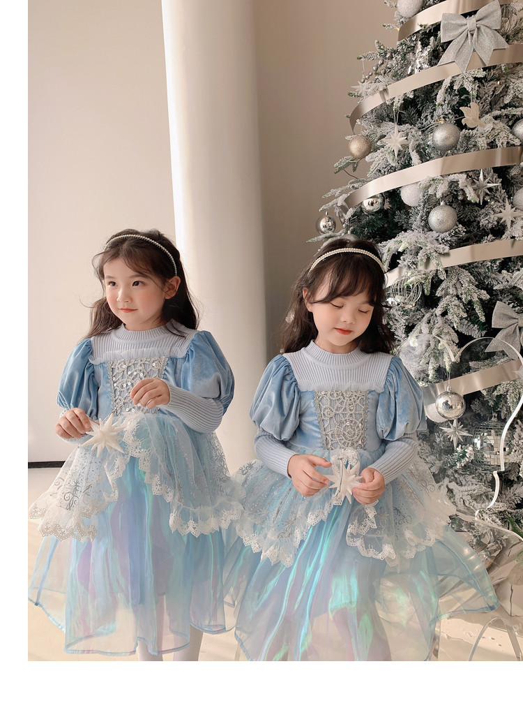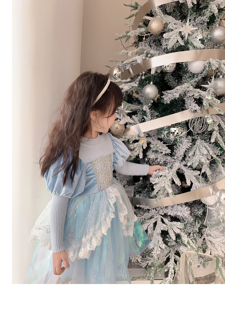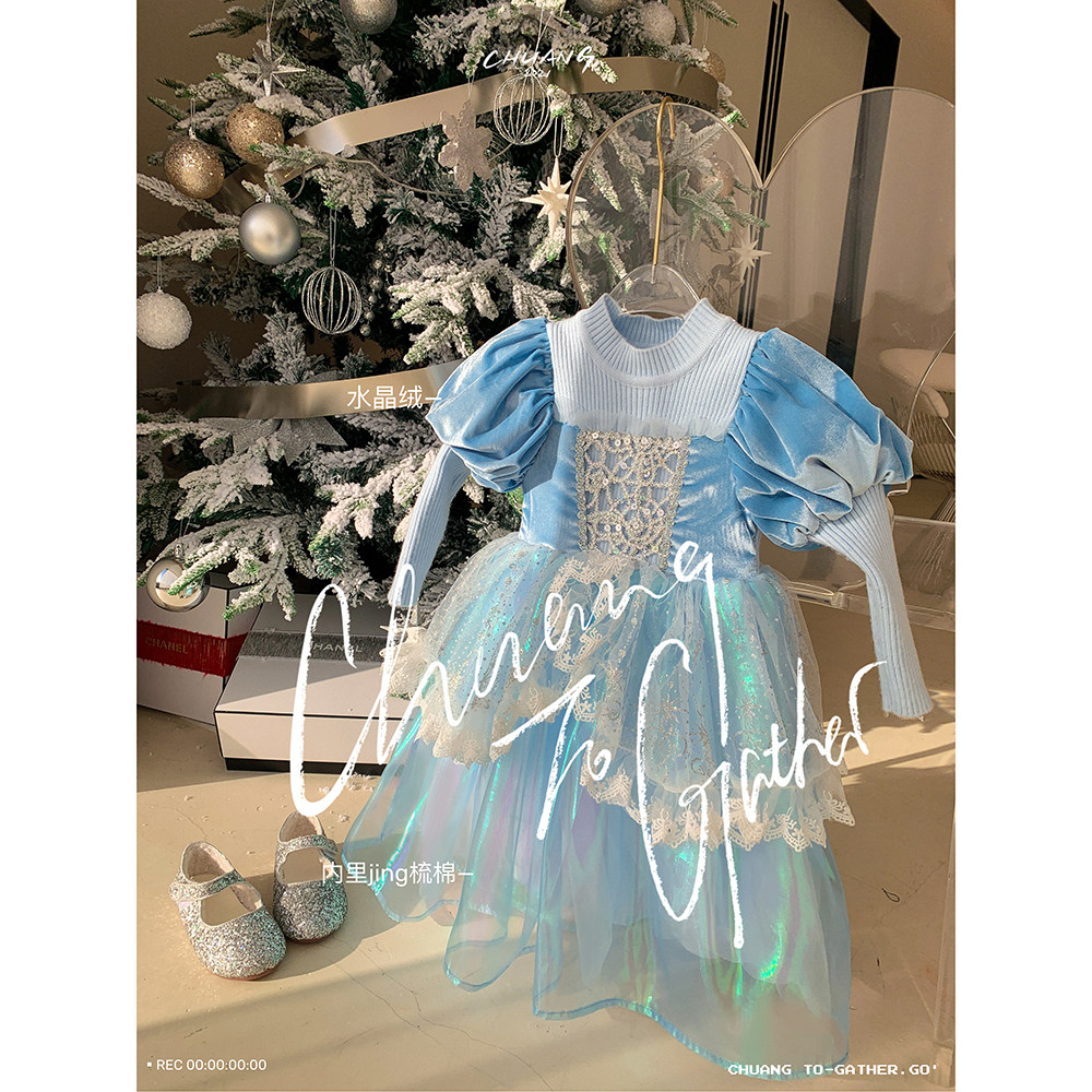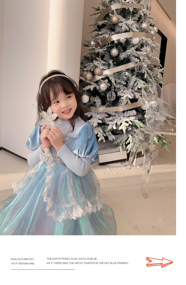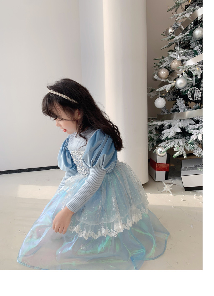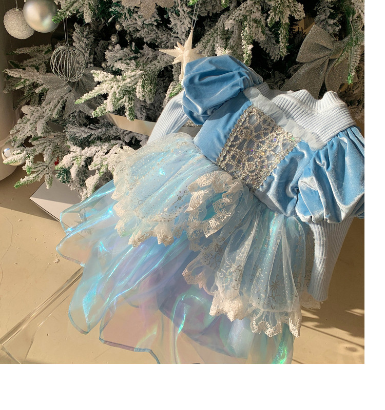Кремовый зимний детский наряд маленькой принцессы, синее платье, (в наличии на складе), из фатина