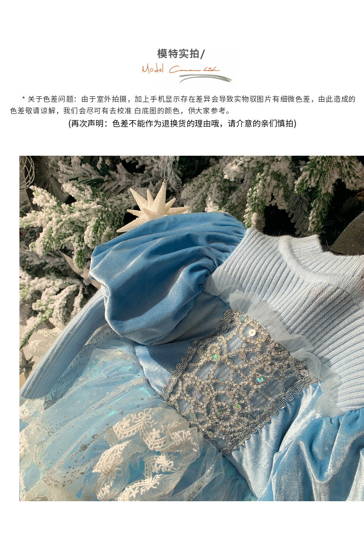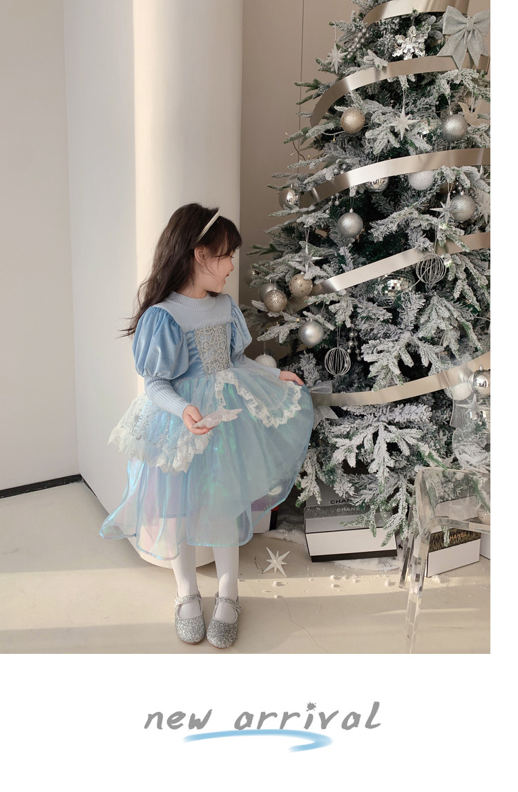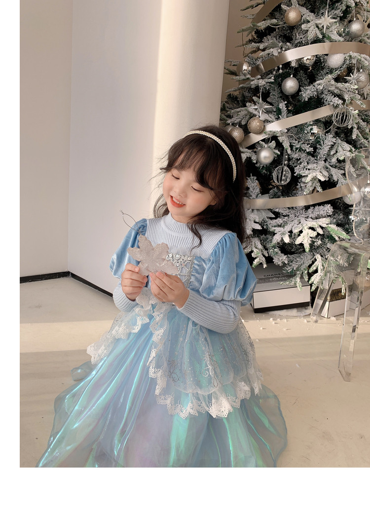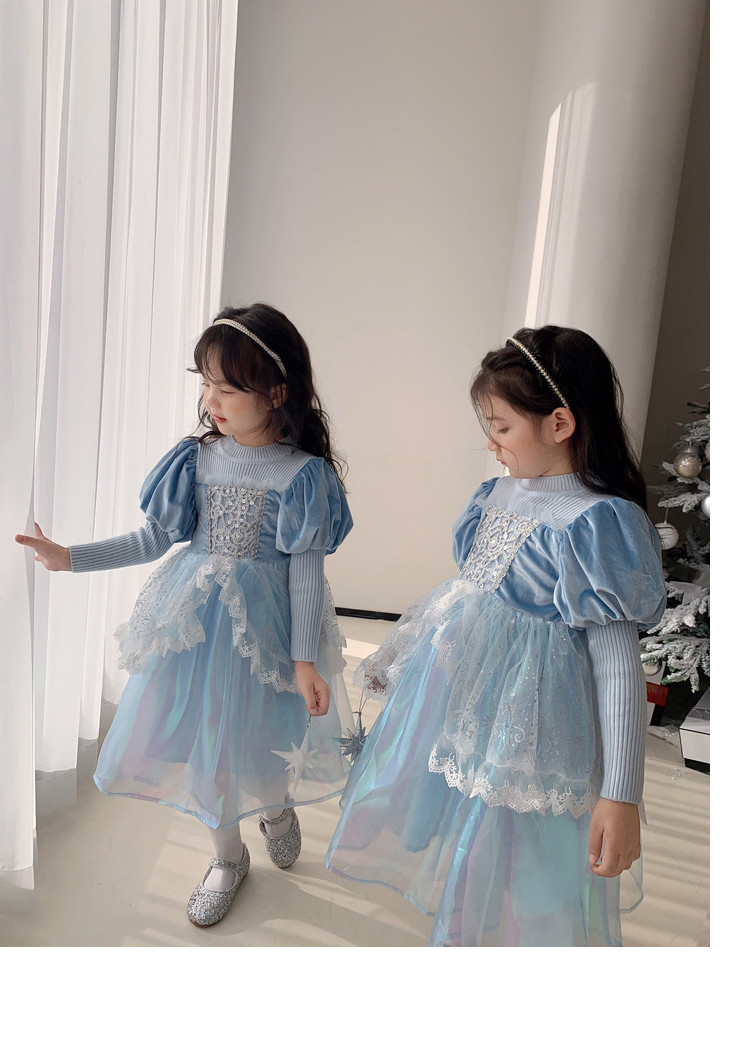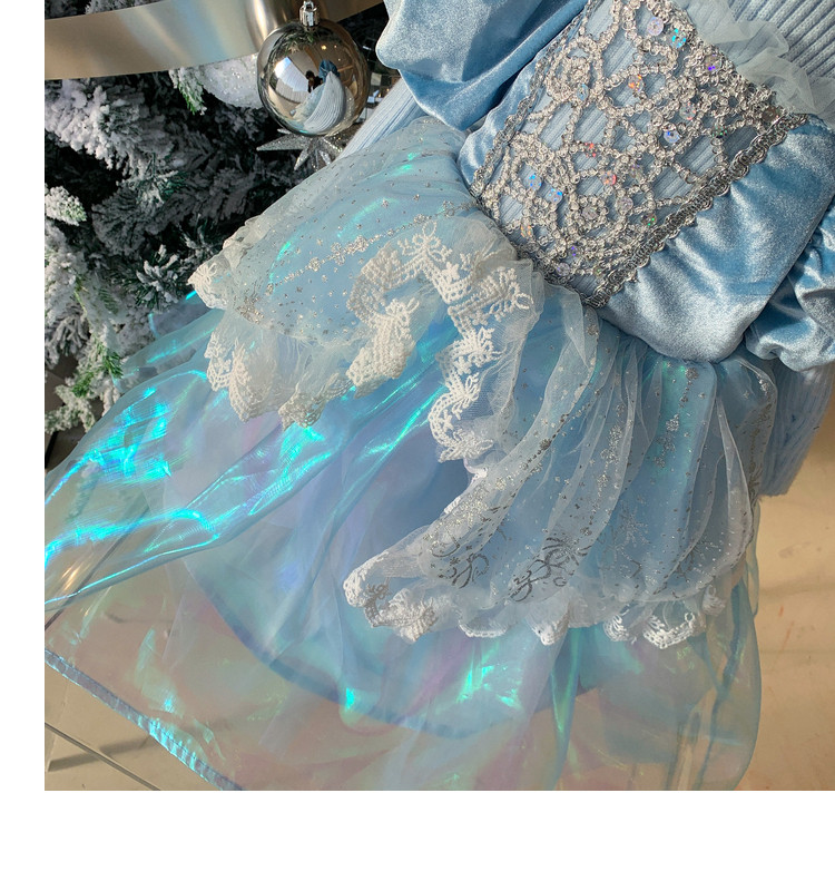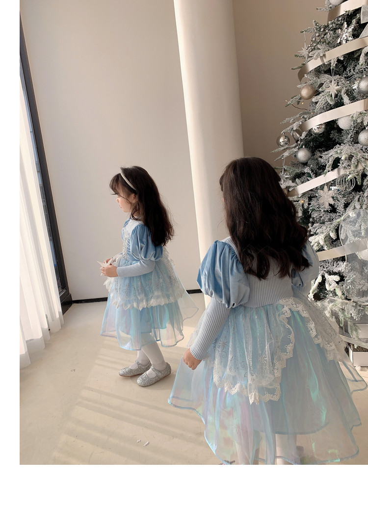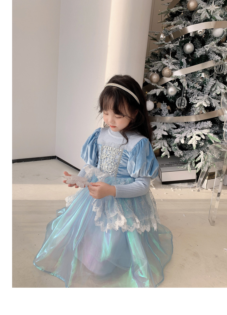 Кремовый зимний детский наряд маленькой принцессы, синее платье, (в наличии на складе), из фатина