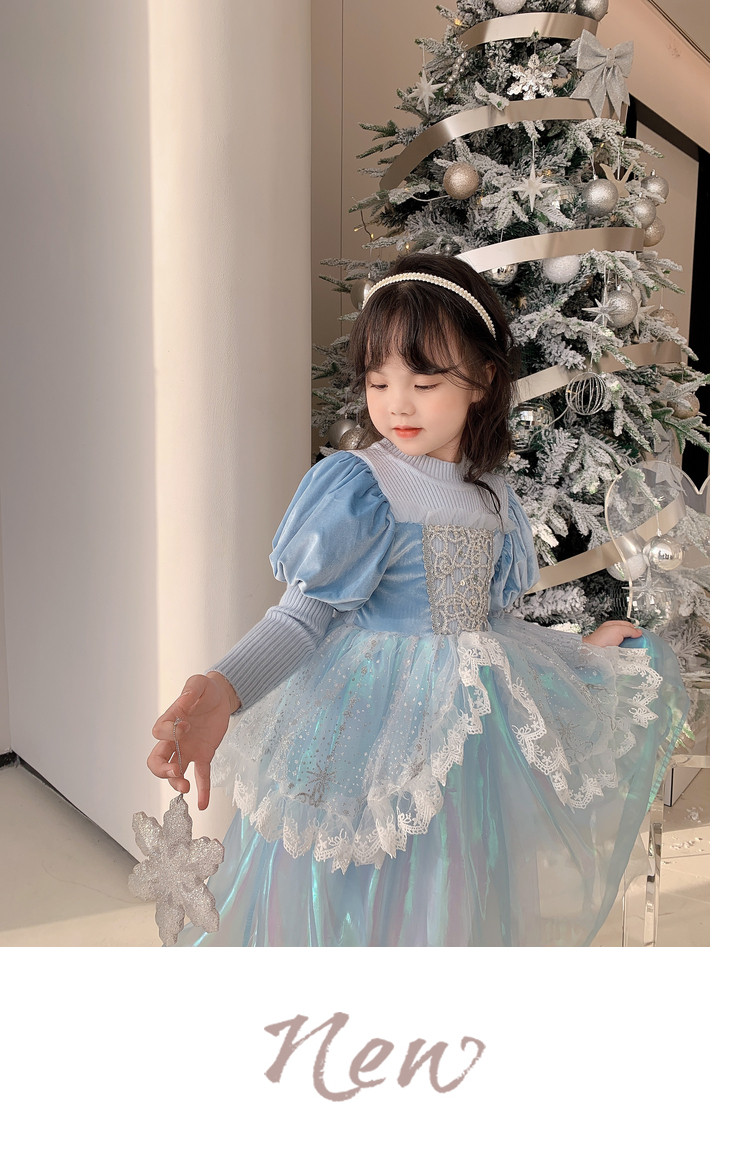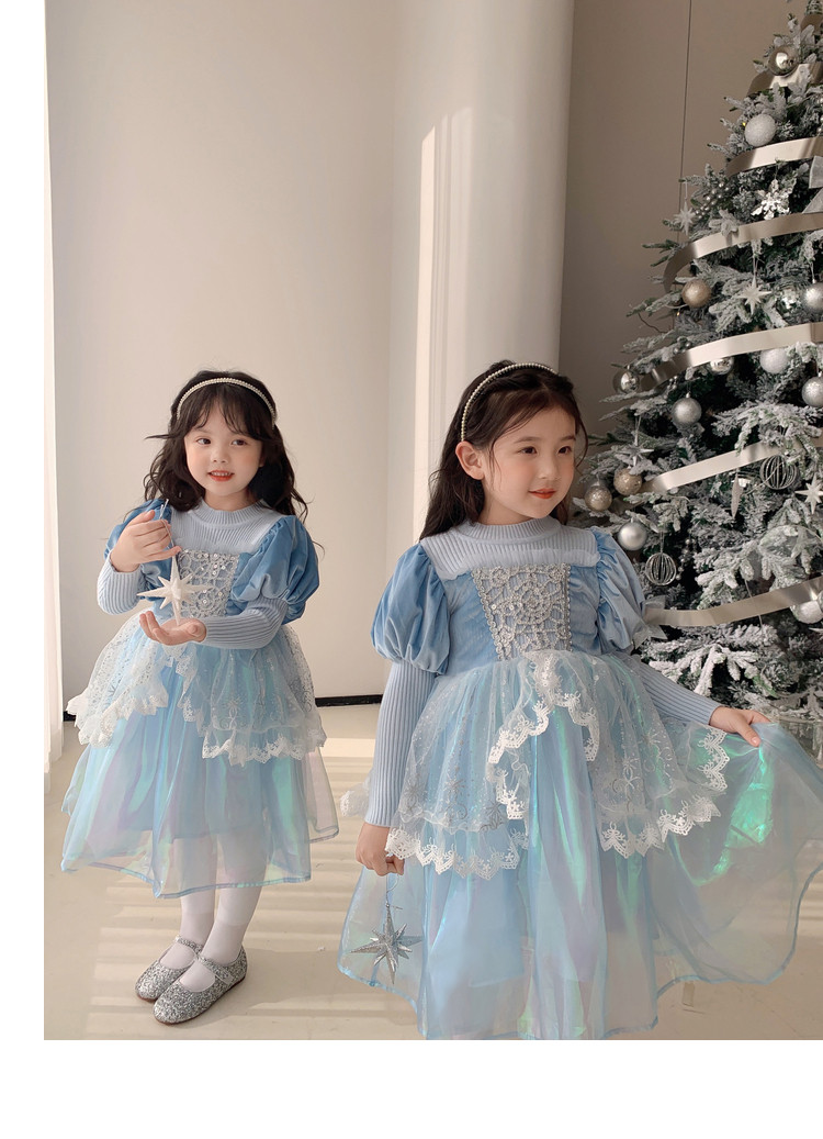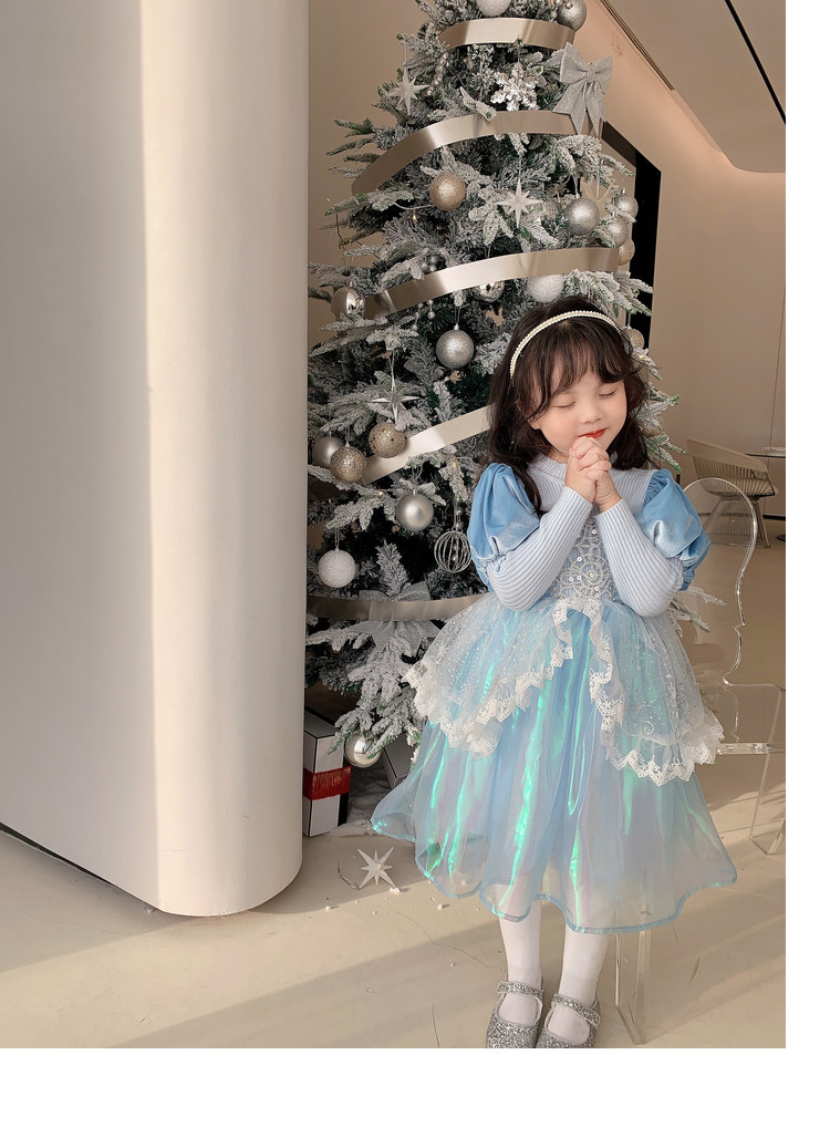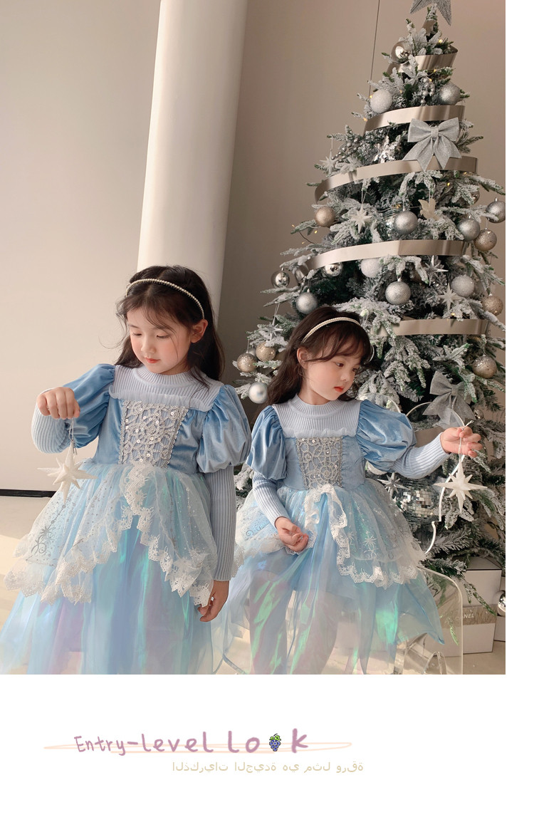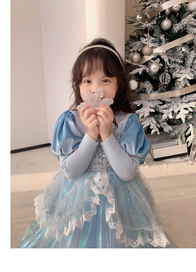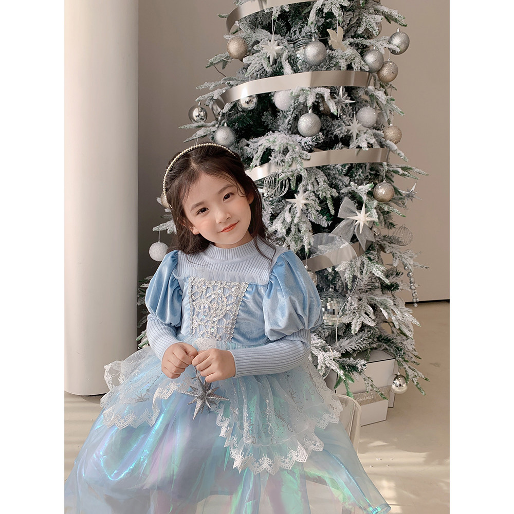 Кремовый зимний детский наряд маленькой принцессы, синее платье, (в наличии на складе), из фатина