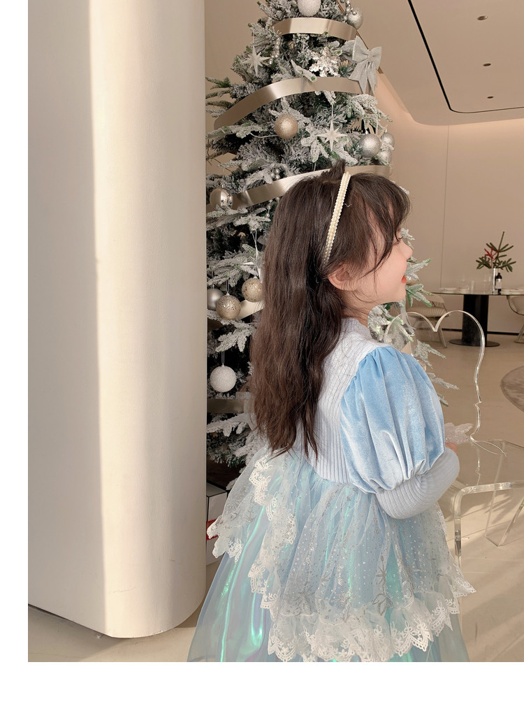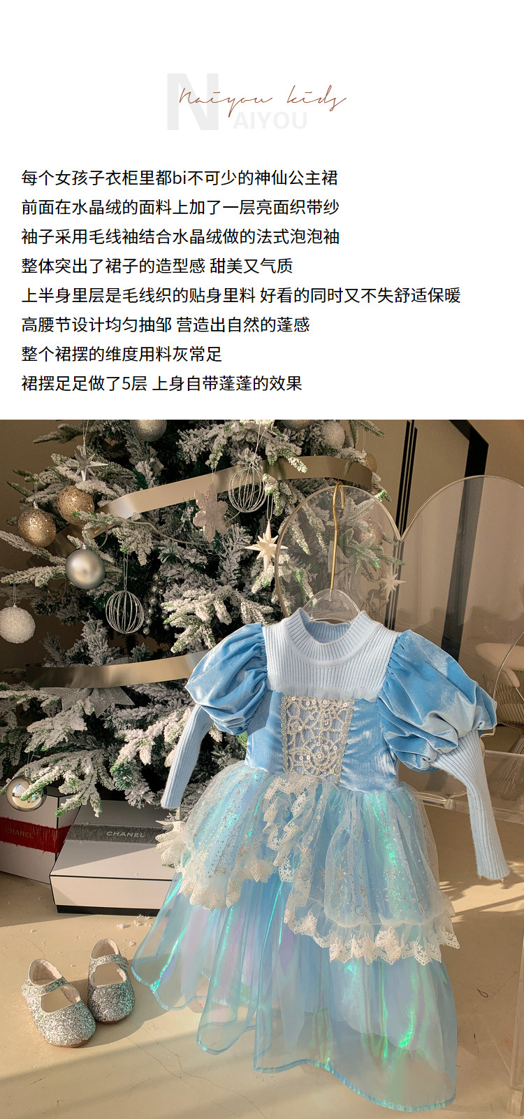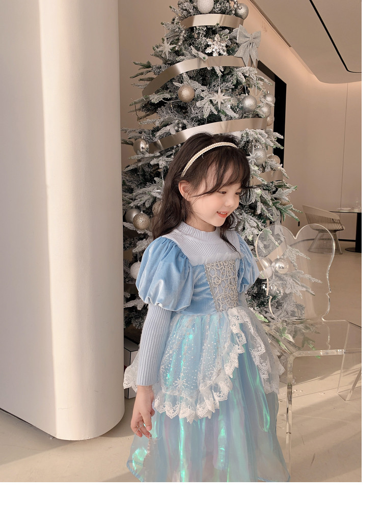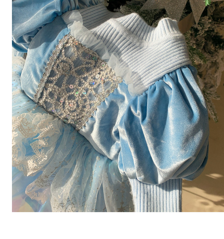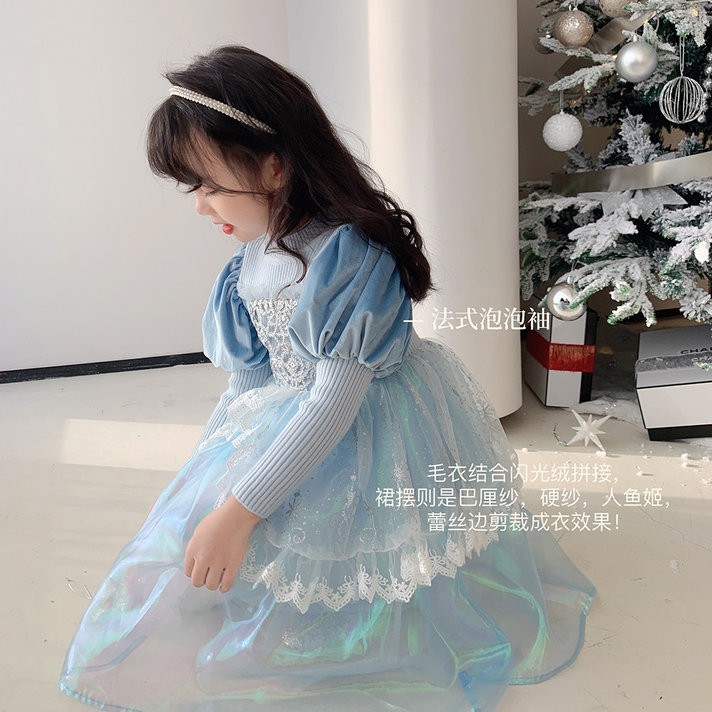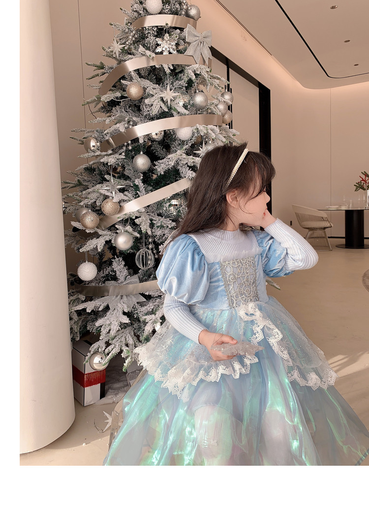 Кремовый зимний детский наряд маленькой принцессы, синее платье, (в наличии на складе), из фатина
