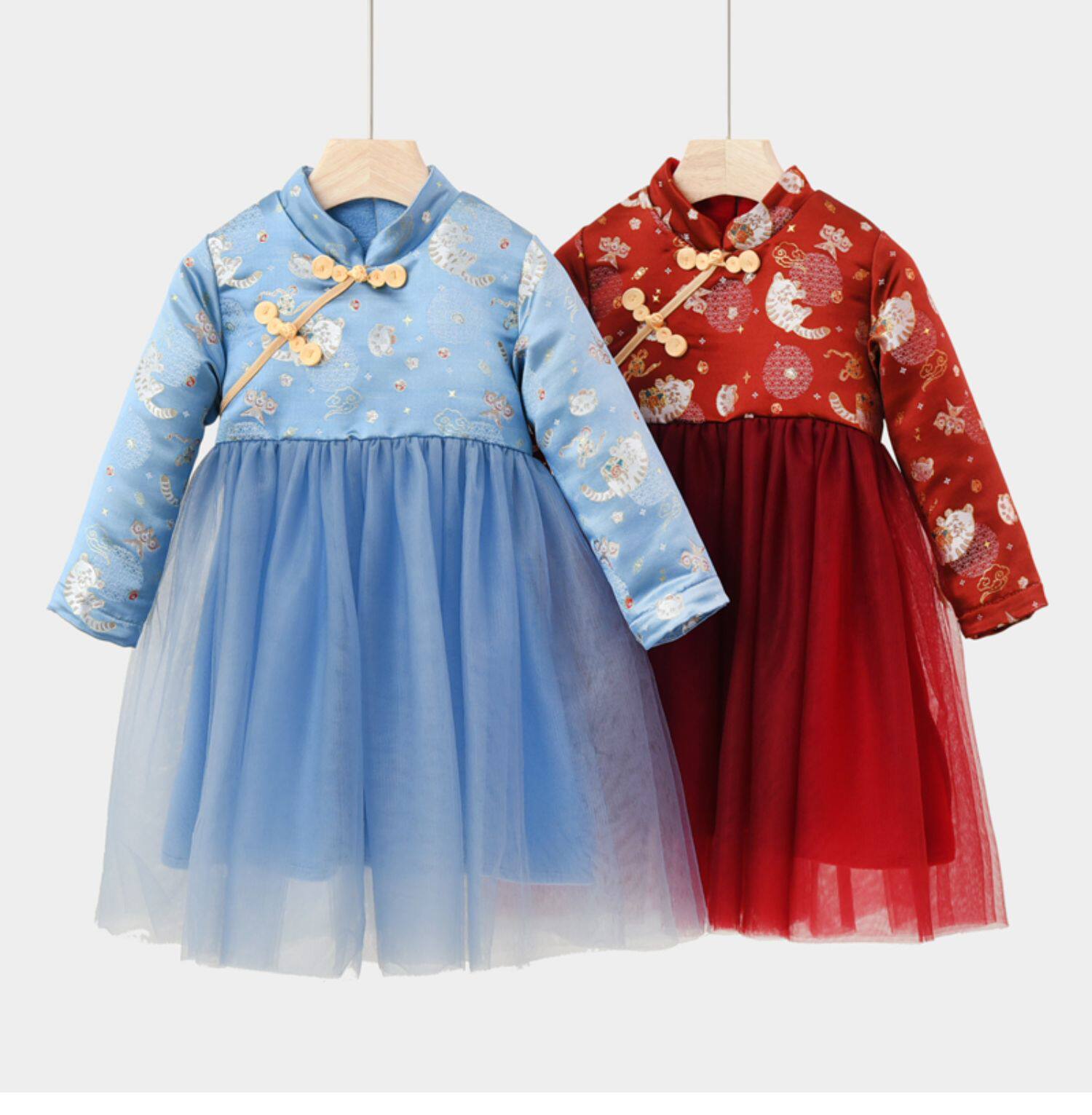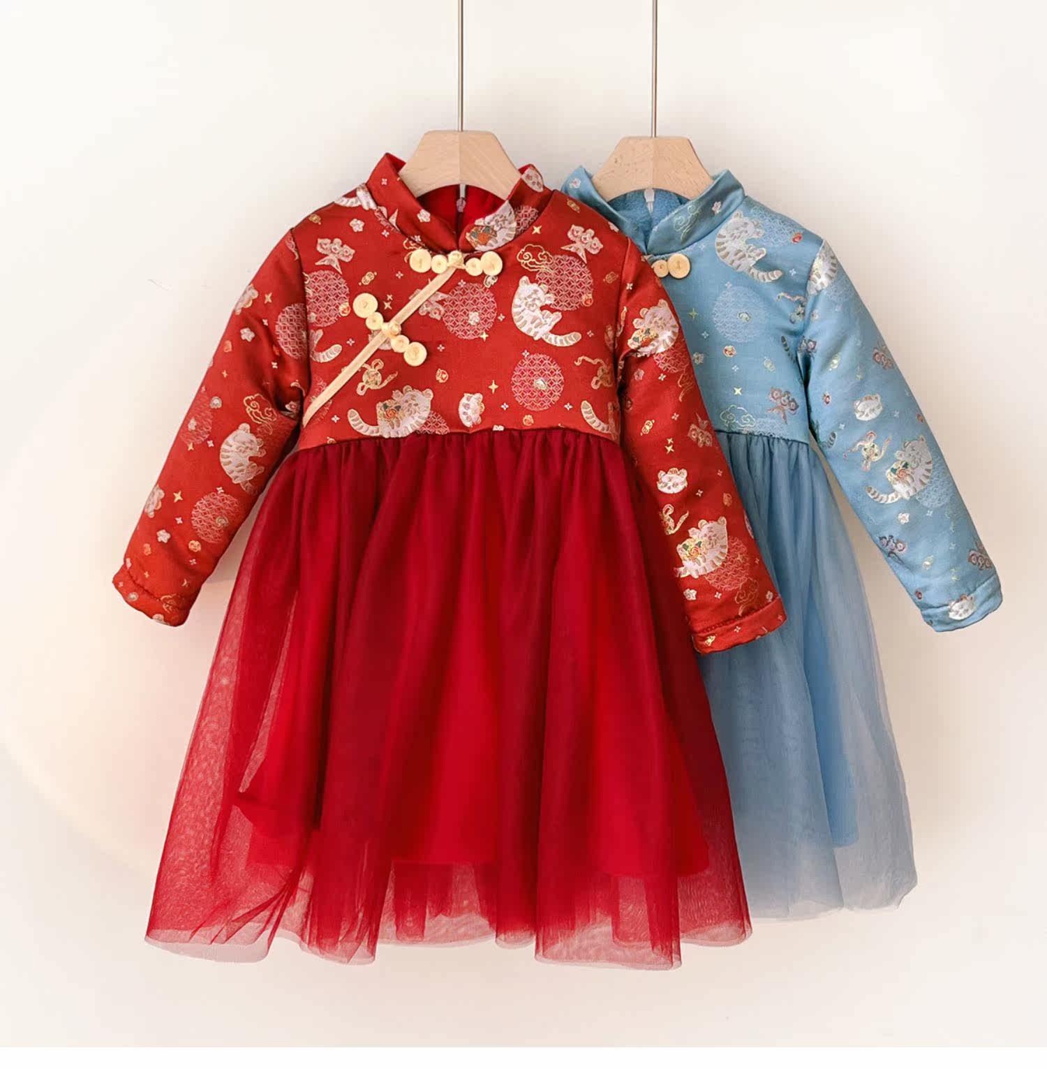 Утепленное платье, детское зимнее ципао, китайский стиль