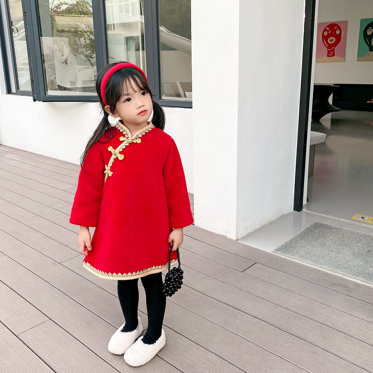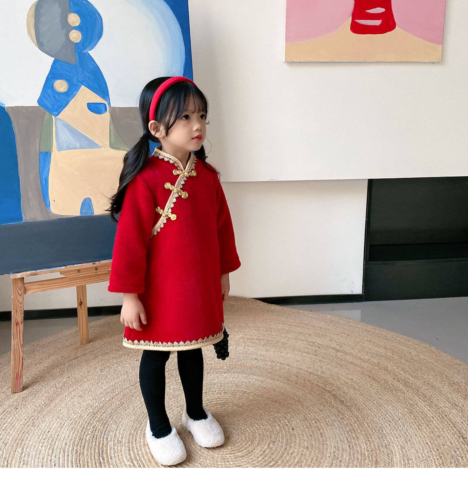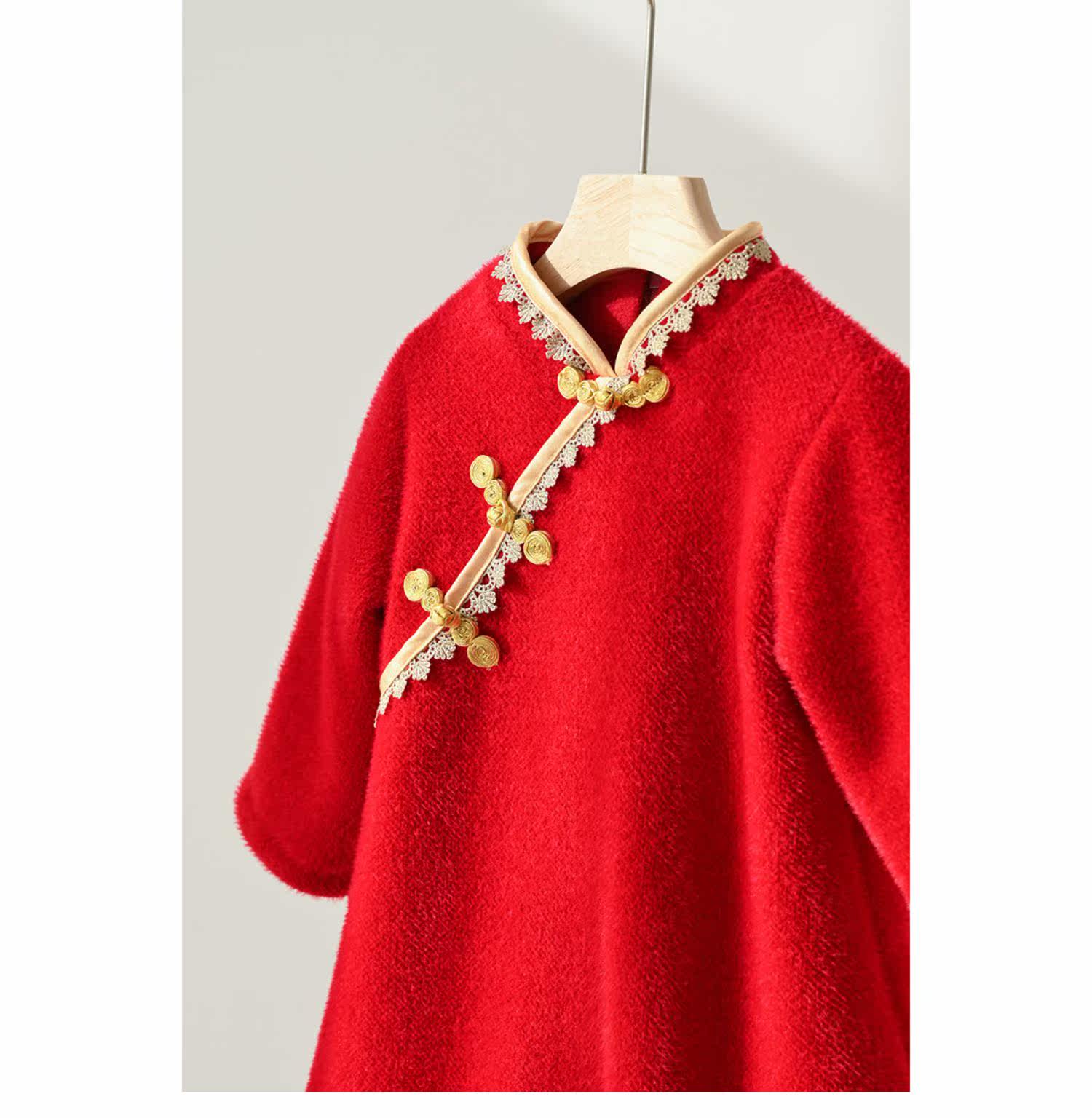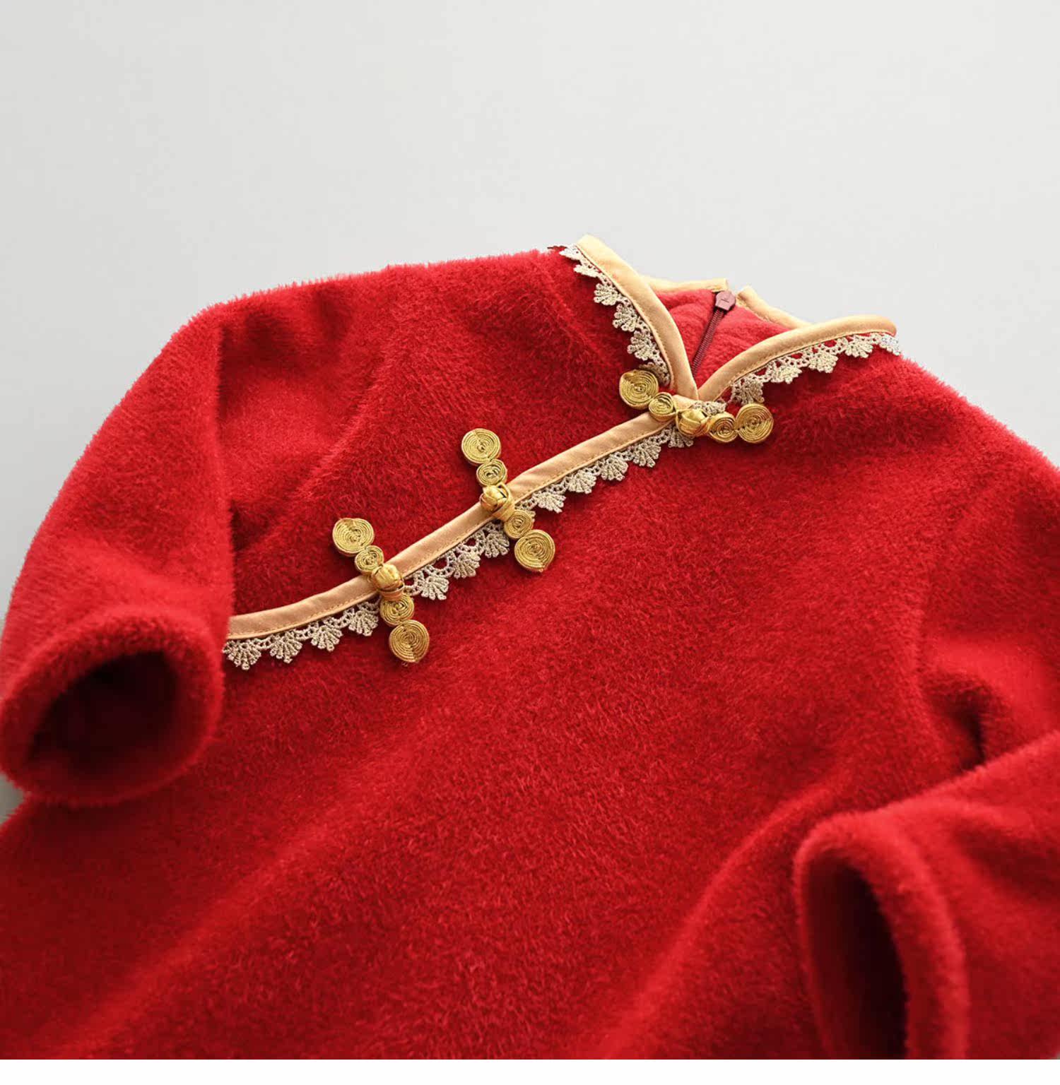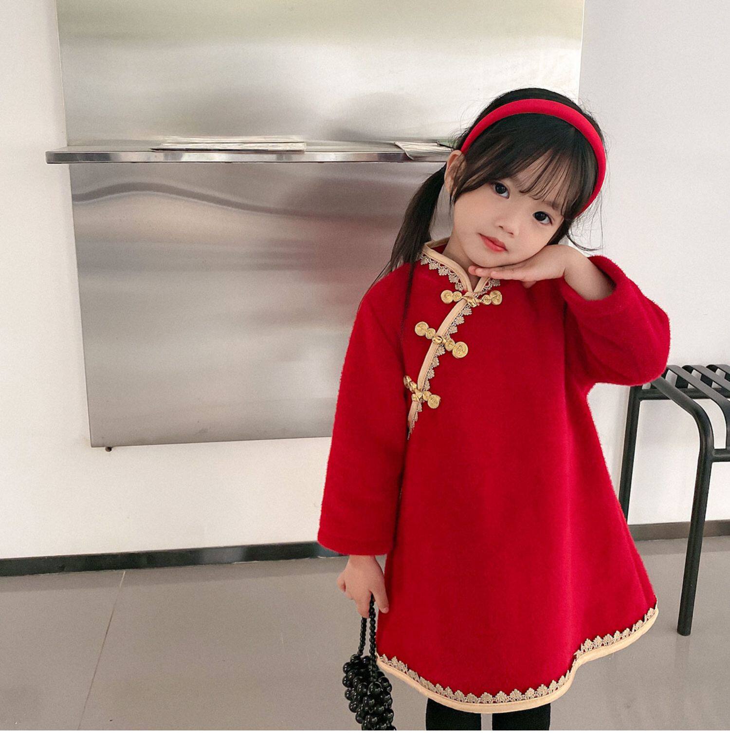 Детское утепленное платье, бархатное ципао, зимняя юбка