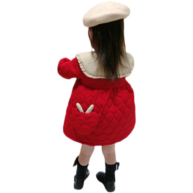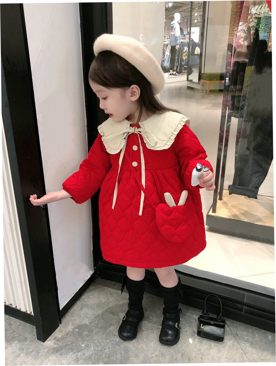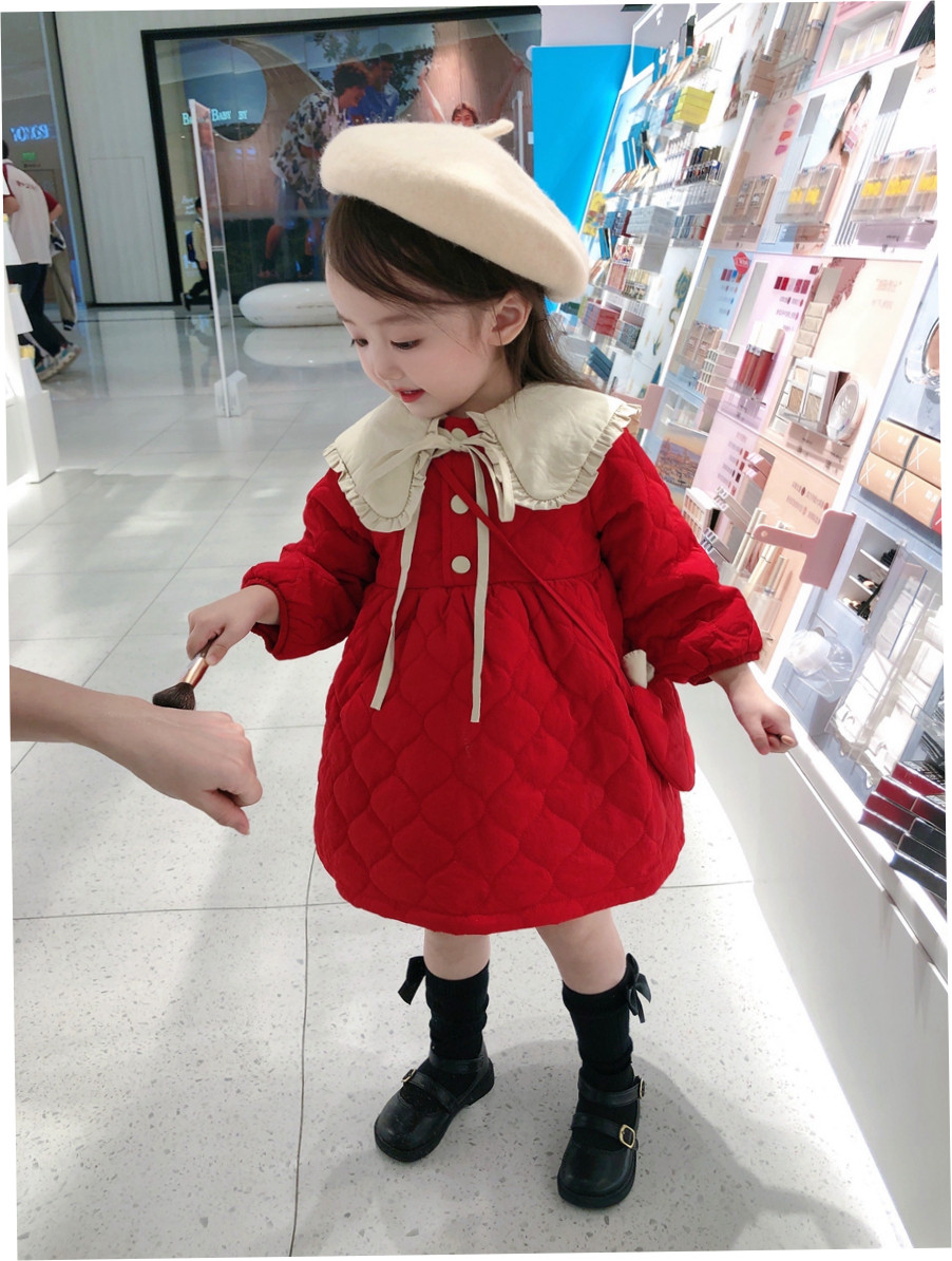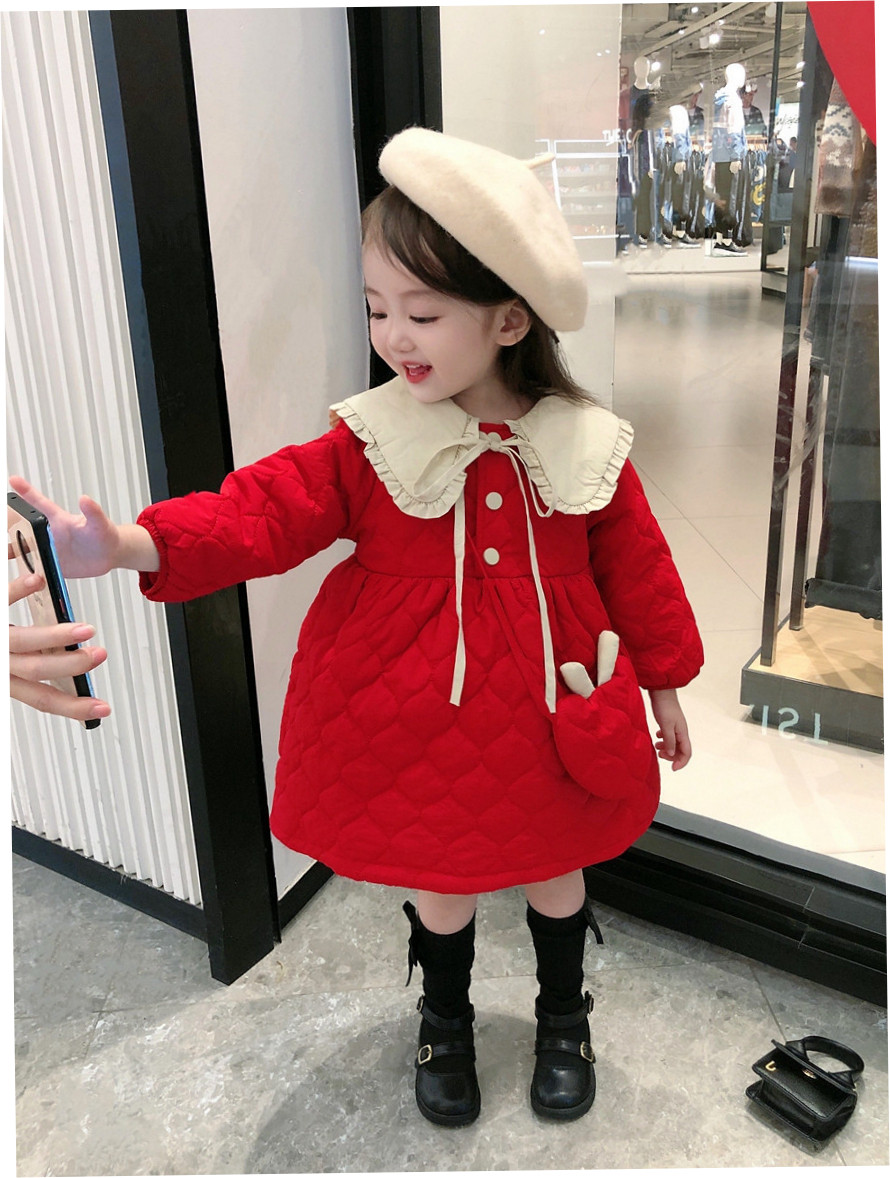 Демисезонное платье, красная юбка, стеганая кукла для девочек, коллекция 2021, в корейском стиле, увеличенная толщина