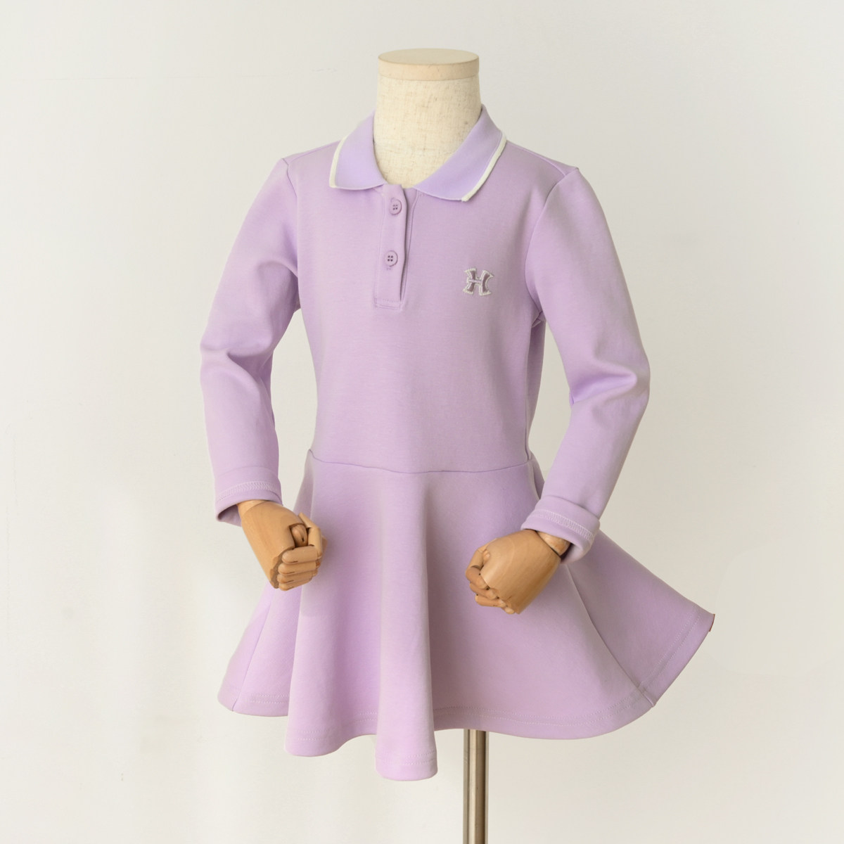 - Сиреневое платье, воротник поло