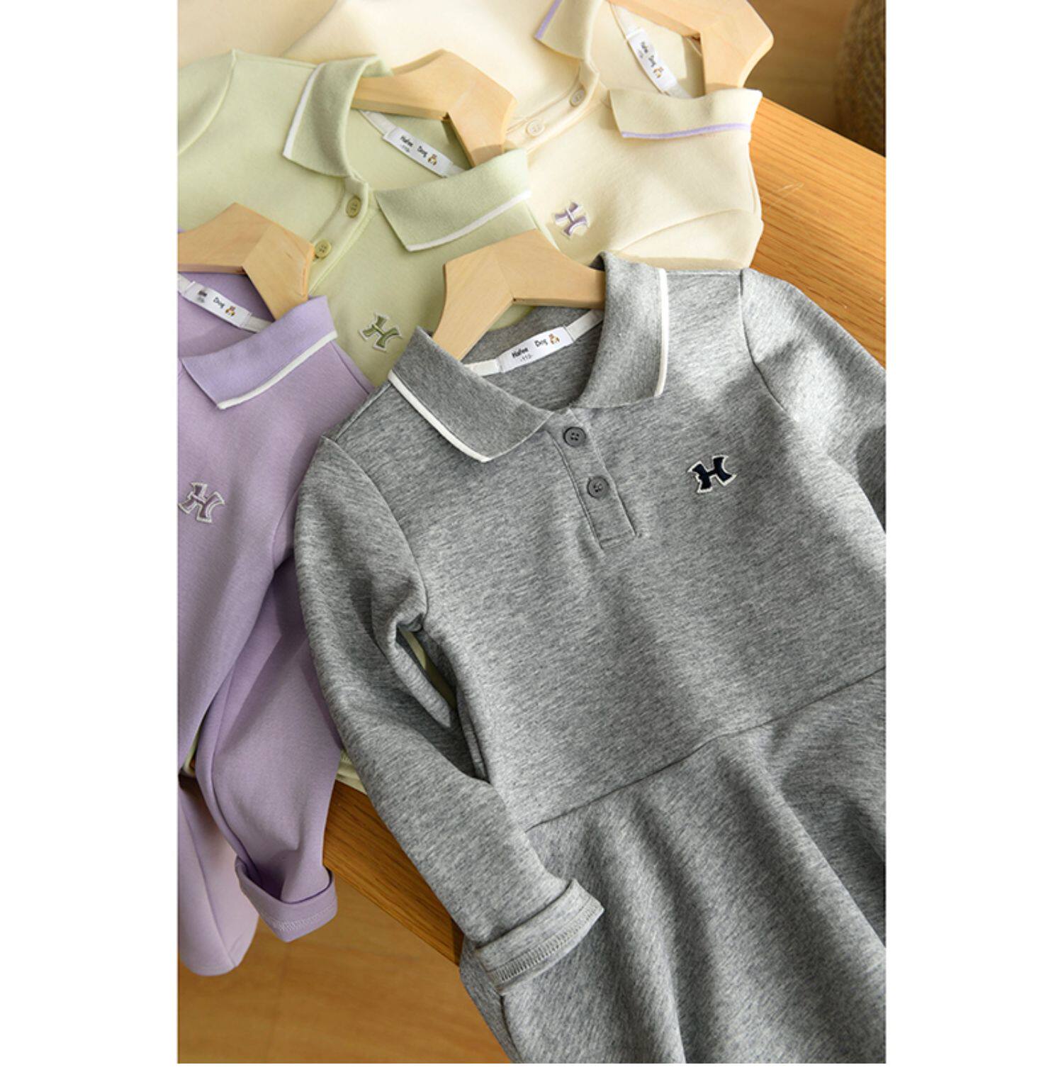 Детский лонгслив, толстовка, осеннее платье, воротник поло, подходит для подростков, детская одежда