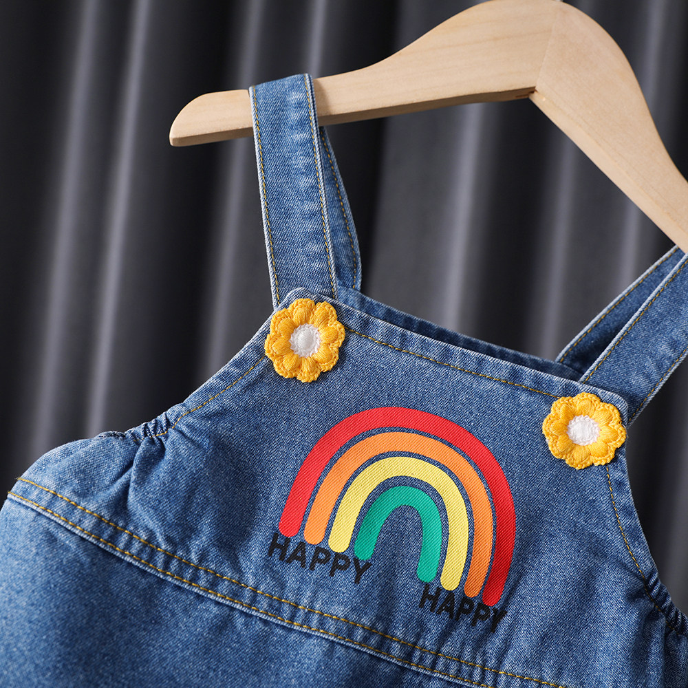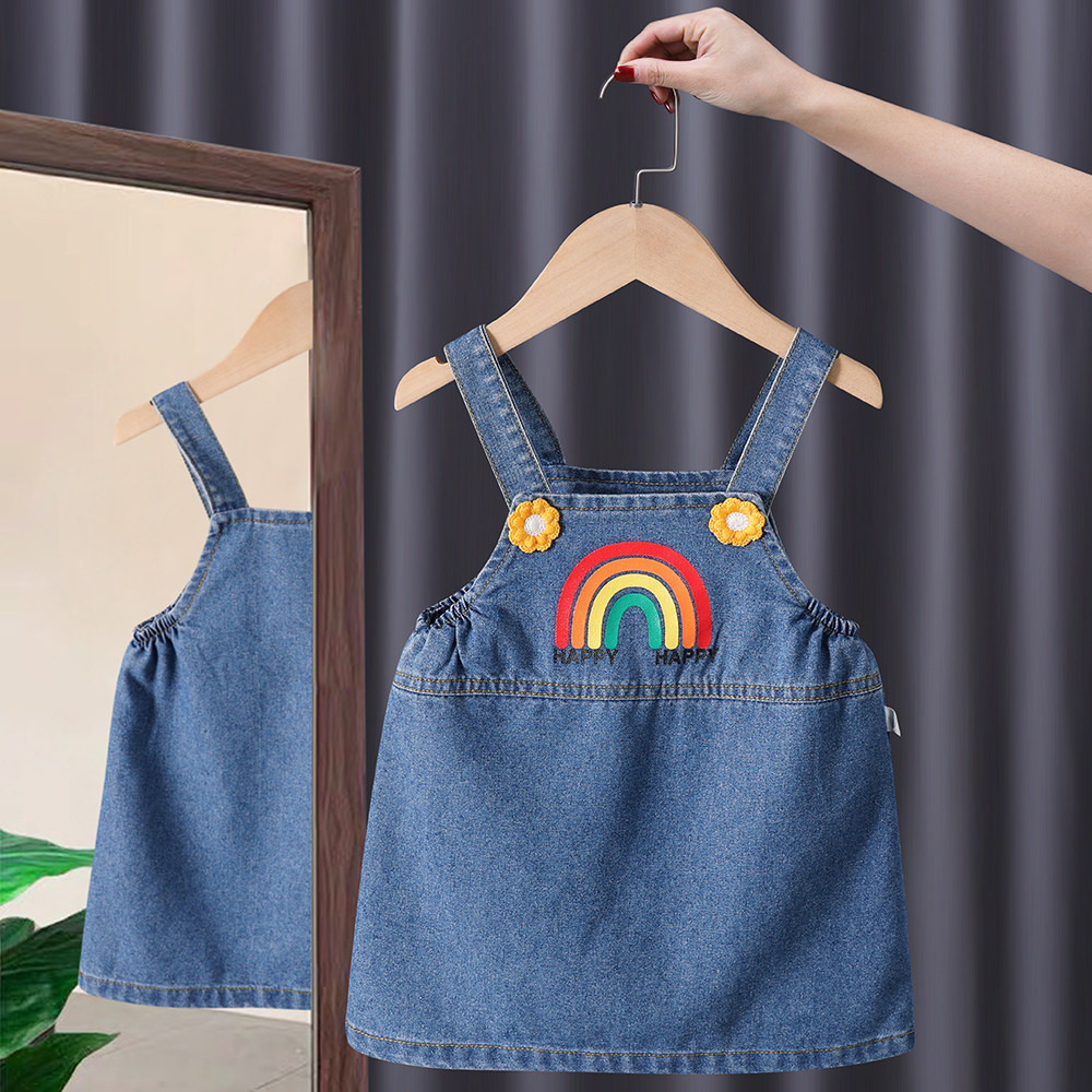 Осеннее радужное платье для девочек, юбка на девочку, джинсовая юбка, в корейском стиле, в западном стиле