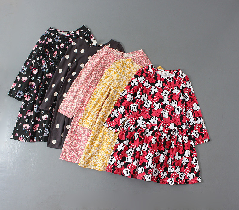90-140 ярдов, разрезая лейбл, одинокая девочка весна и осенние хлопковое тонкое платье, юбка для печати сокровищ маленьких детей