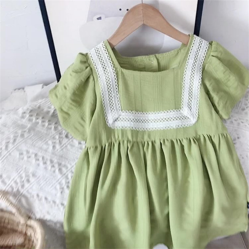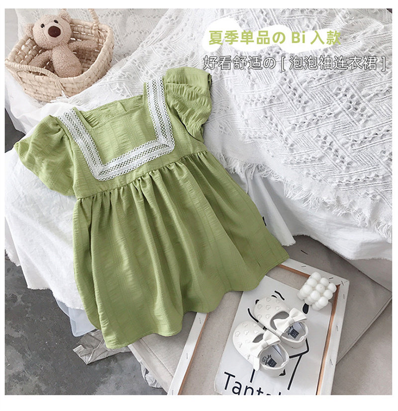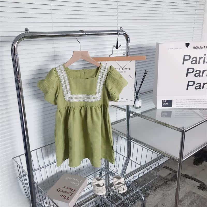 (Трансграничная торговля), летнее платье, зеленая детская свежая юбка для девочек, в корейском стиле, рукава фонарики, квадратный вырез