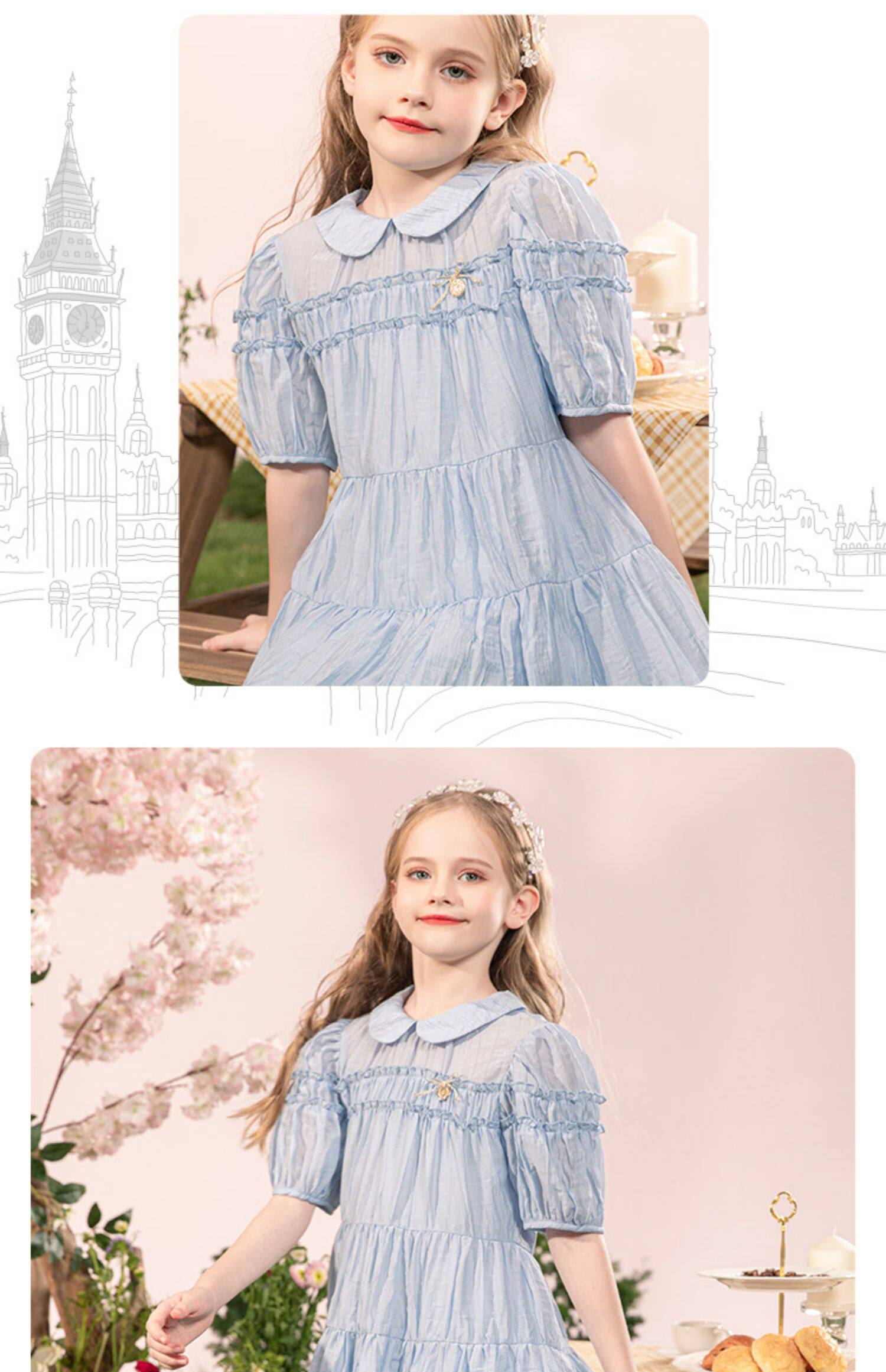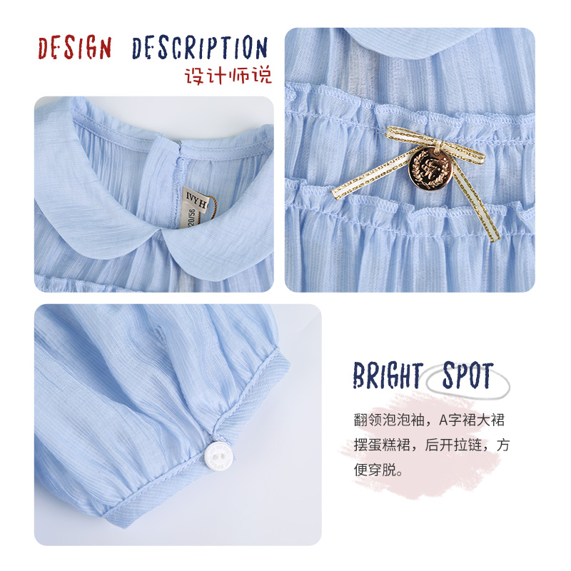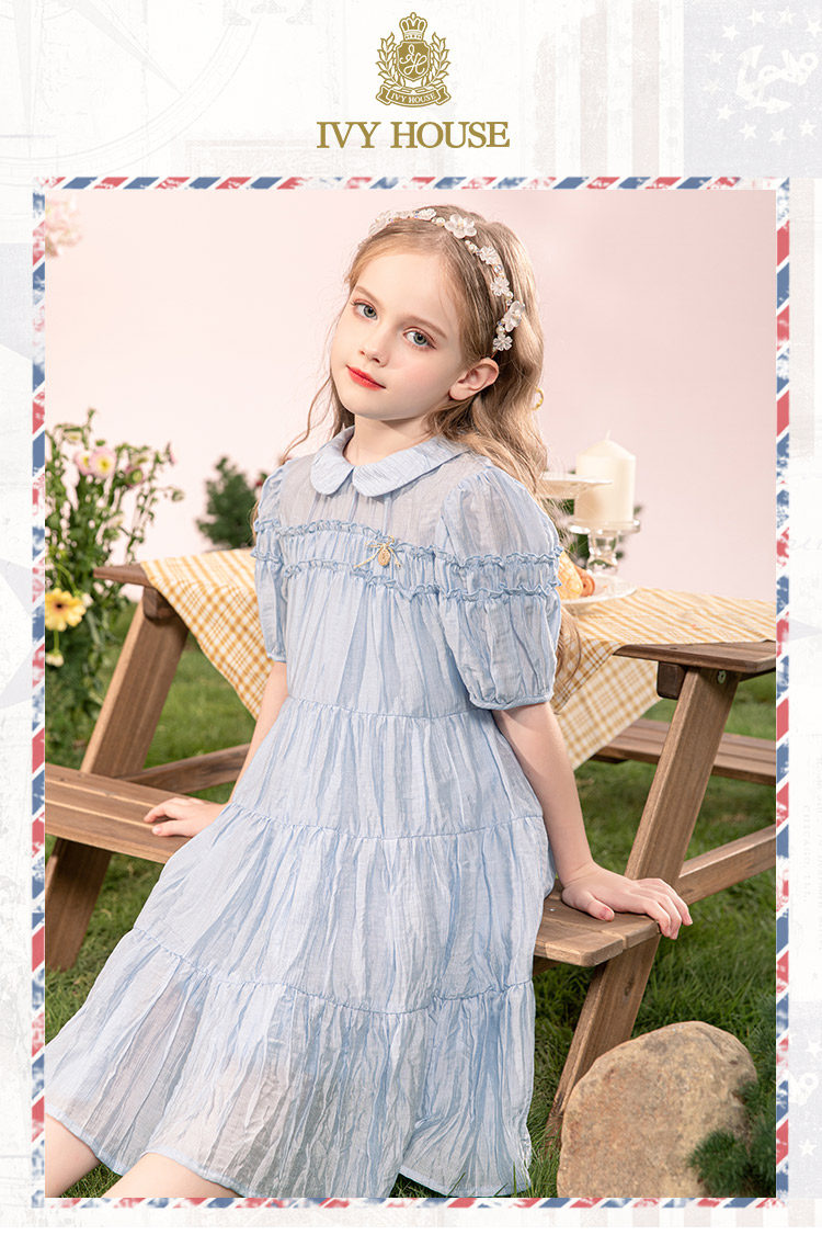 Детское летнее платье, юбка, ретро кукла, детская одежда, кукольный воротник, в западном стиле