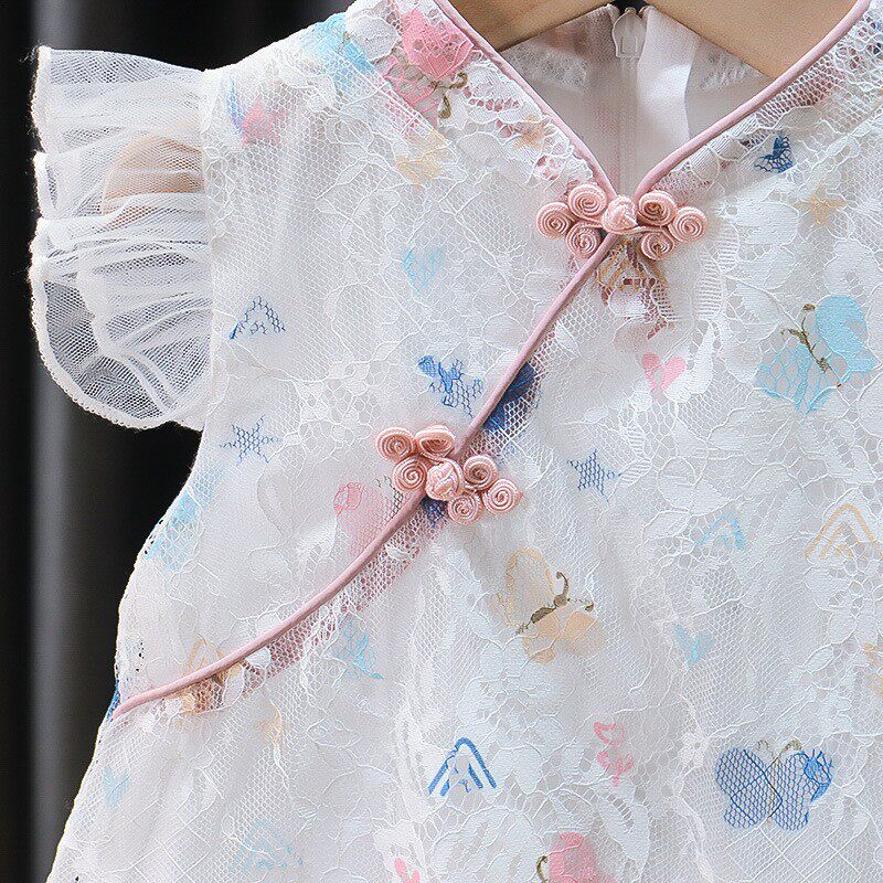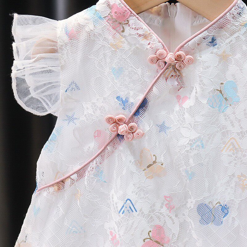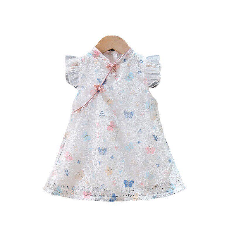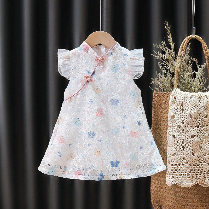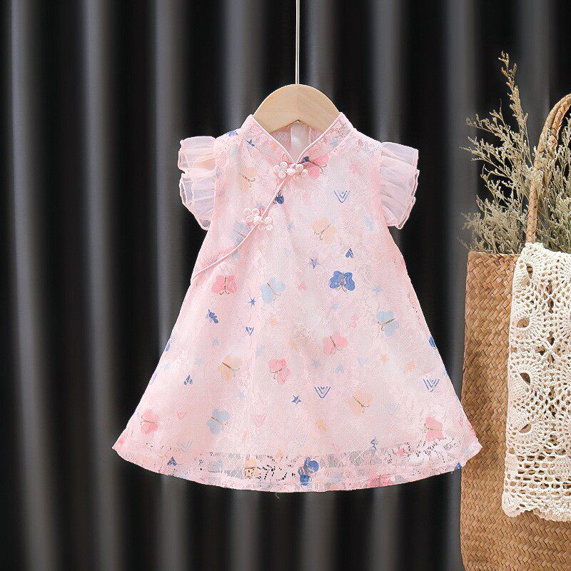 Ципао, ханьфу, летний наряд маленькой принцессы, этническое платье для девочек, короткий рукав
