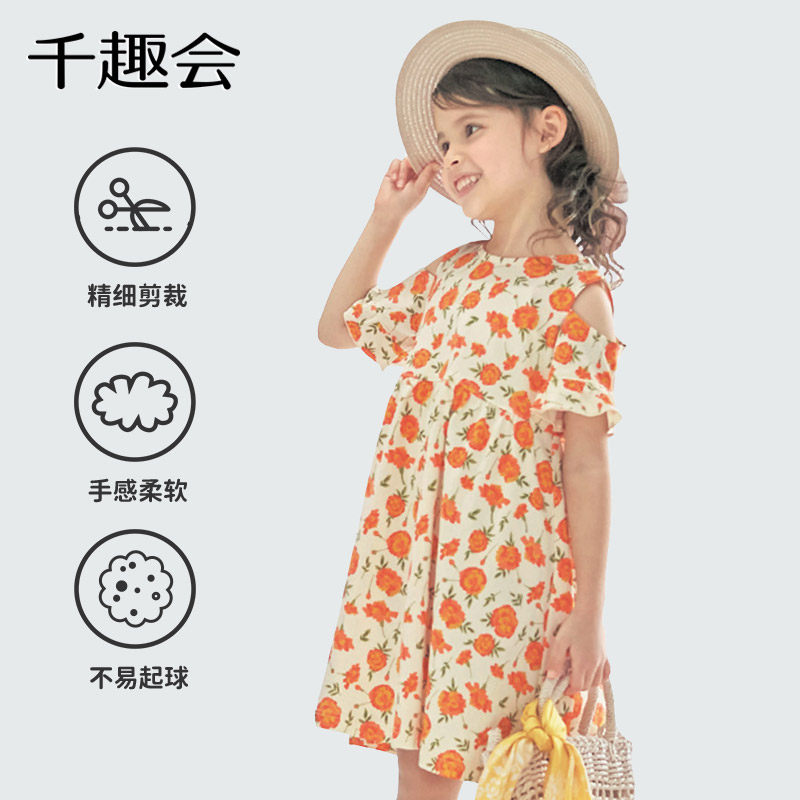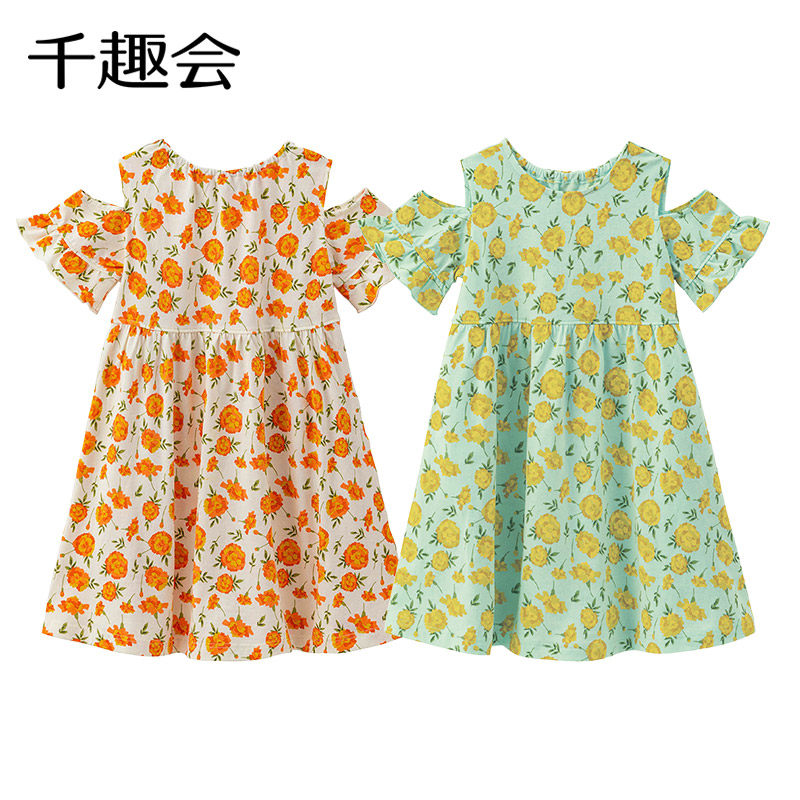 Летнее детское модное милое дышащее хлопковое платье, в цветочек