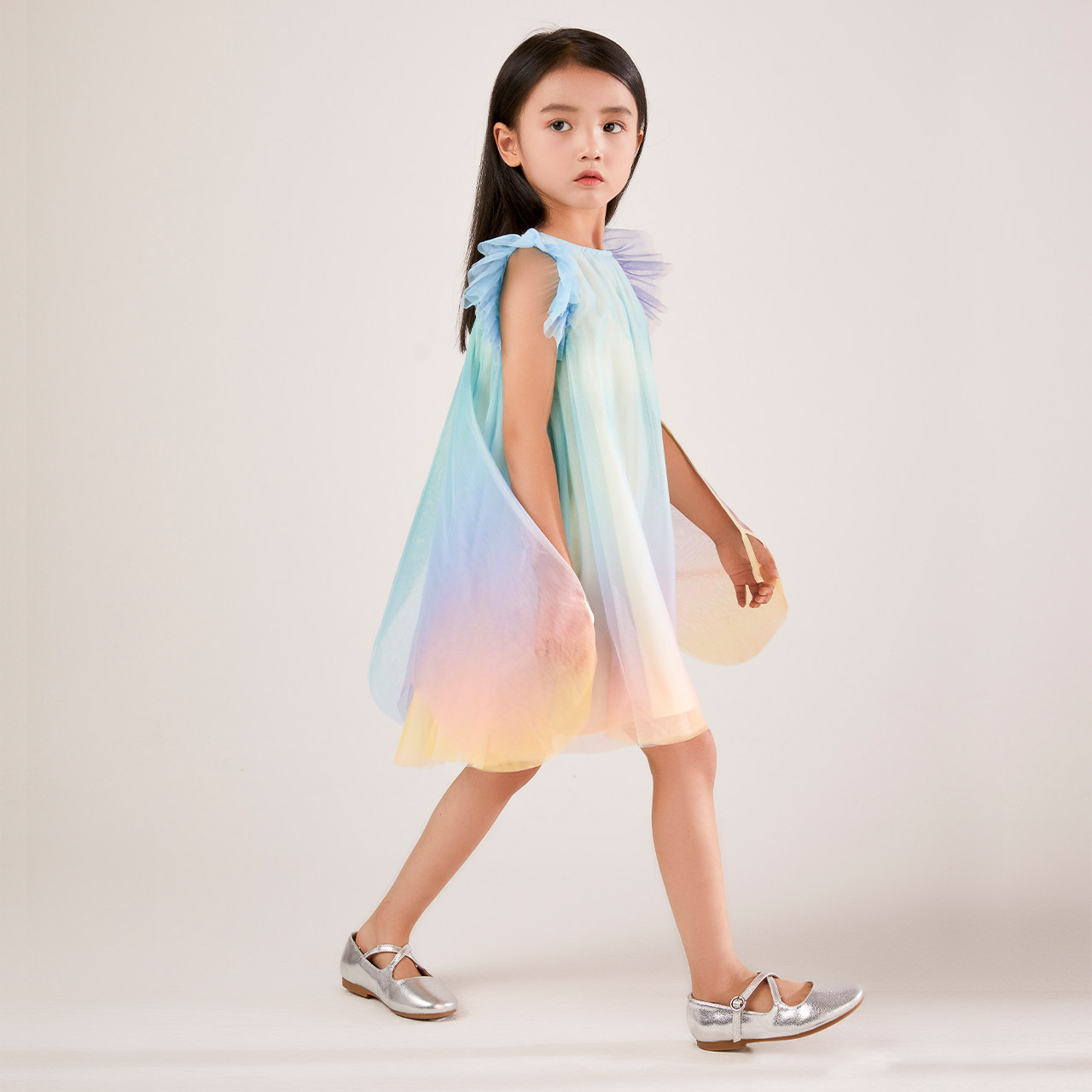 Наряд маленькой принцессы, летнее платье, сиреневая юбка, градиент, короткий рукав