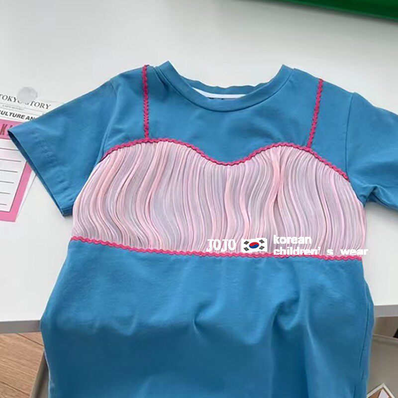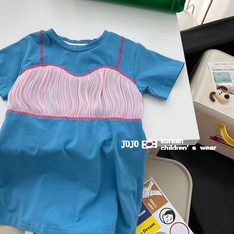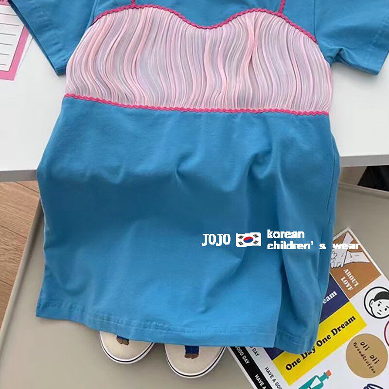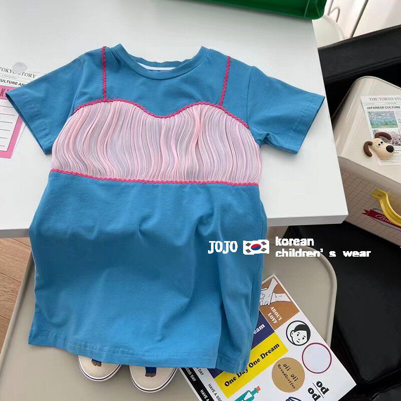 Комплект, длинное летнее платье-футболка, хлопковое платье, в корейском стиле, детская одежда, средней длины, в западном стиле