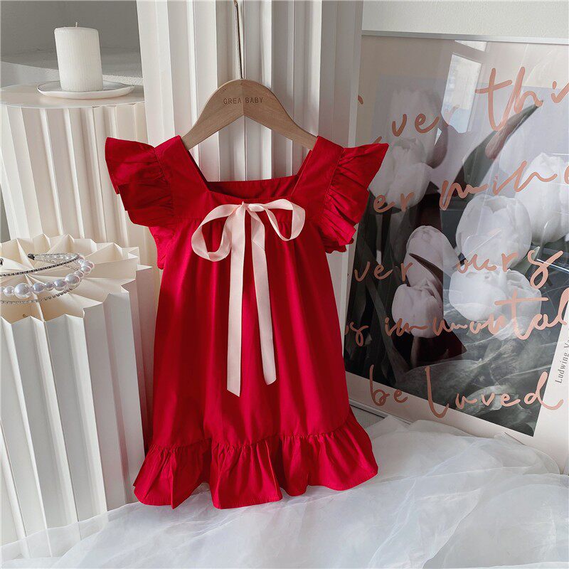 Хлопковое летнее элитное платье с рукавами, наряд маленькой принцессы для девочек, в западном стиле, в корейском стиле, детская одежда