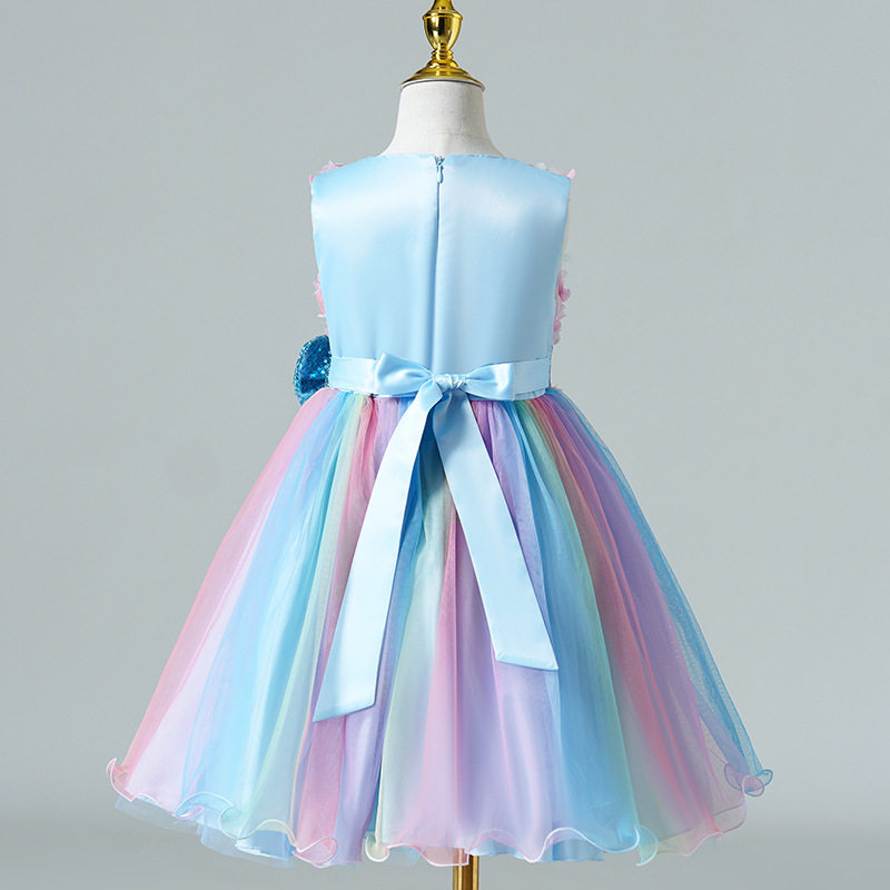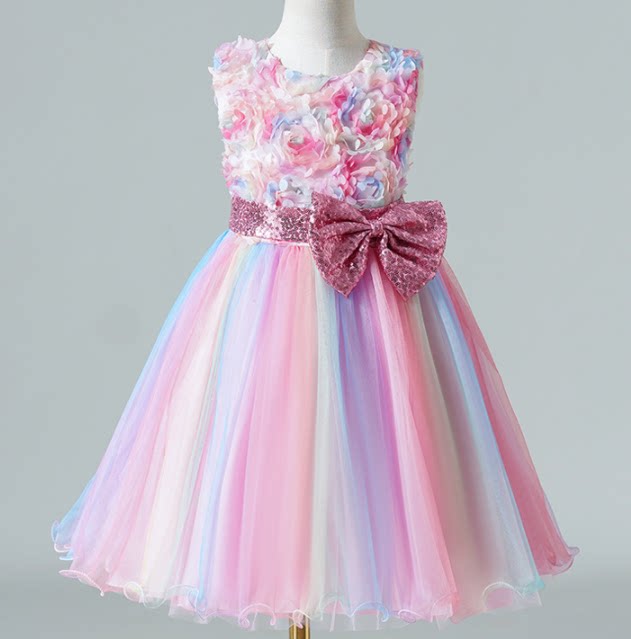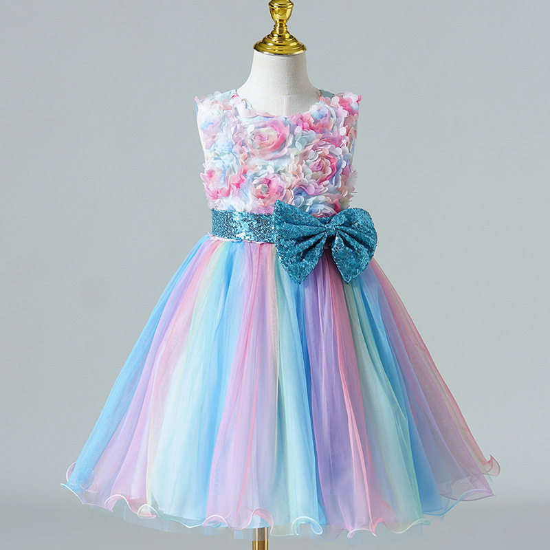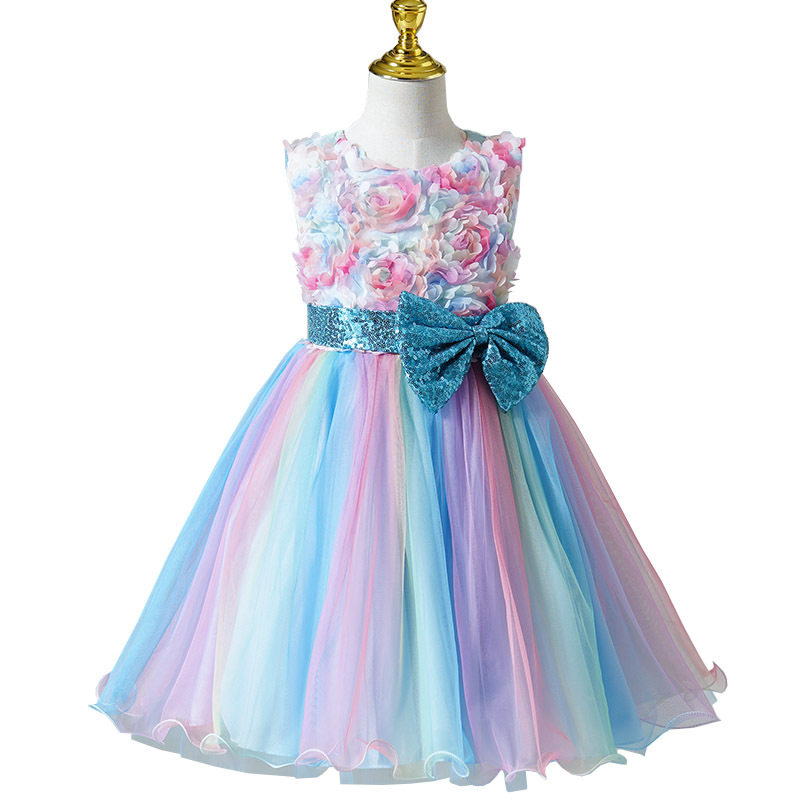 Летнее платье, наряд маленькой принцессы без рукавов, юбка, в цветочек, из фатина