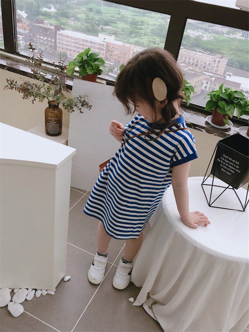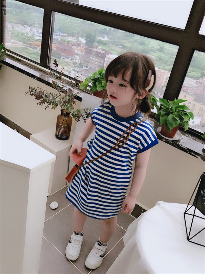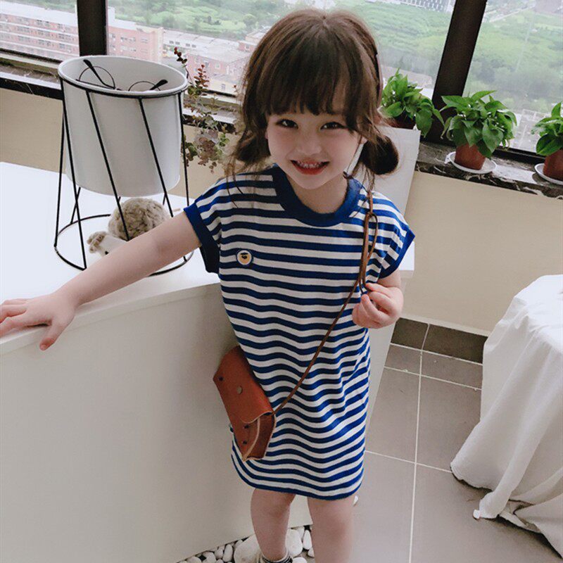 Военно-морское летнее платье с круглым воротником, детская юбка, в корейском стиле, в западном стиле, свободный прямой крой