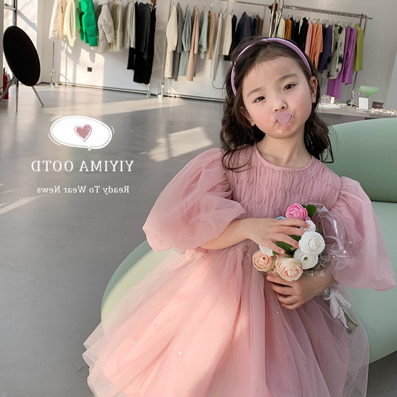 Розовое платье, детская летняя одежда, наряд маленькой принцессы, из фатина, в западном стиле, рукава фонарики