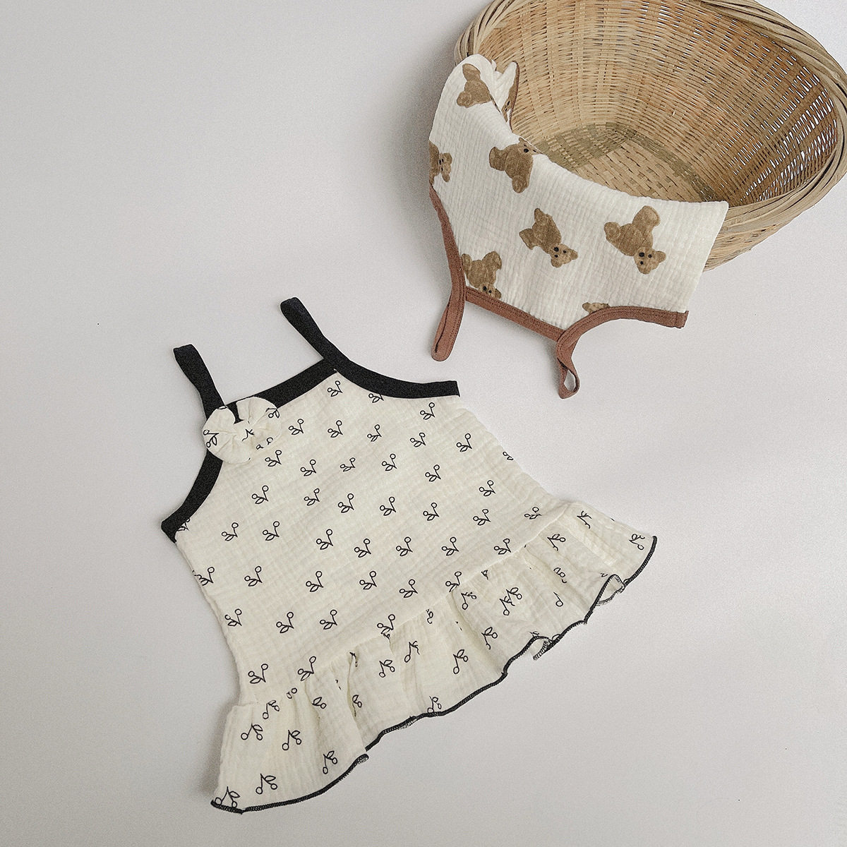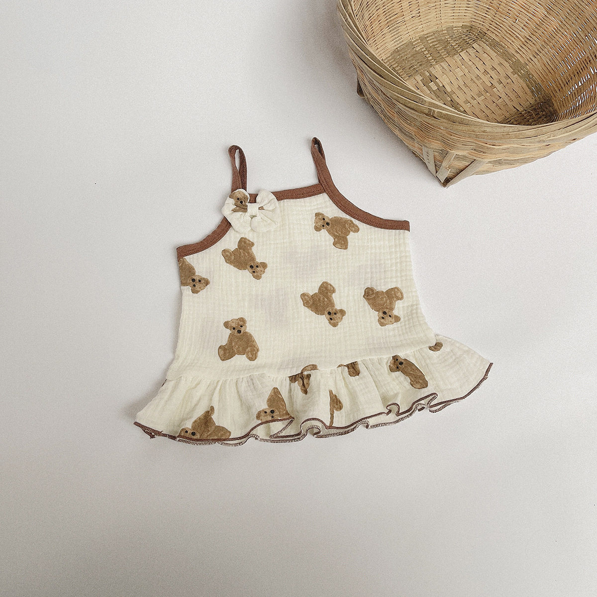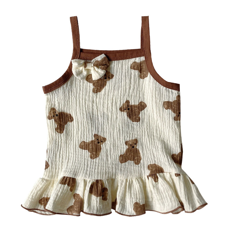 Летняя одежда для раннего возраста, летнее платье-комбинация, летняя милая юбка на девочку, комфортное платье, в корейском стиле, с медвежатами, в западном стиле