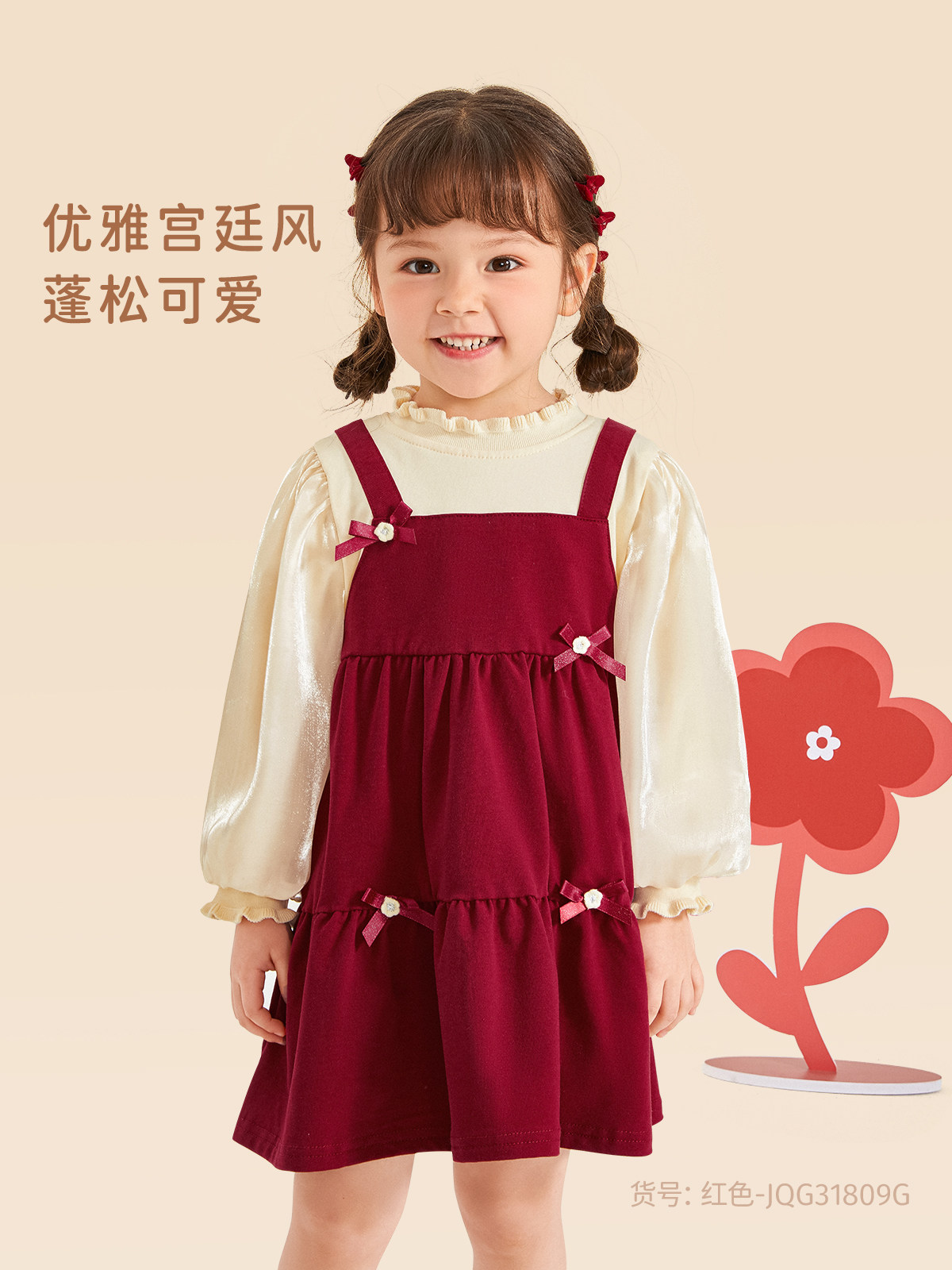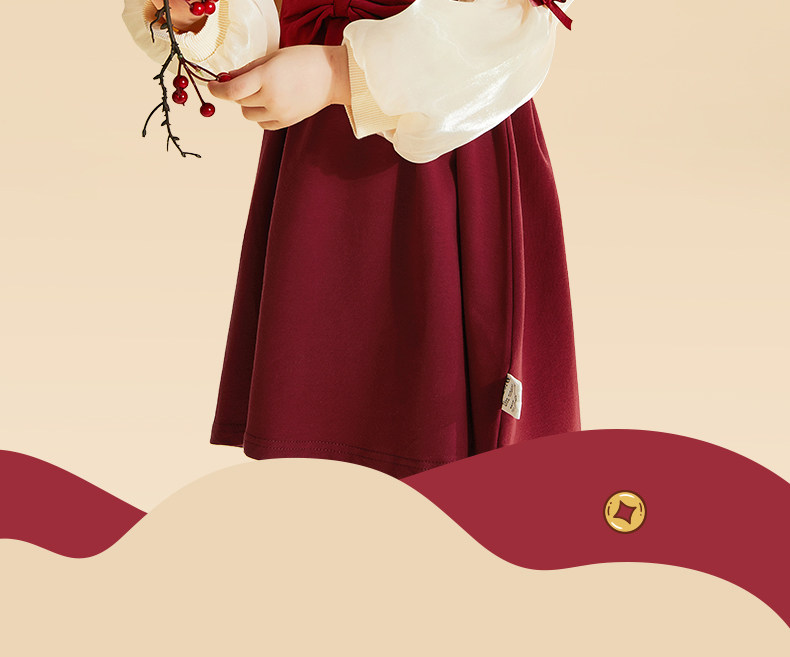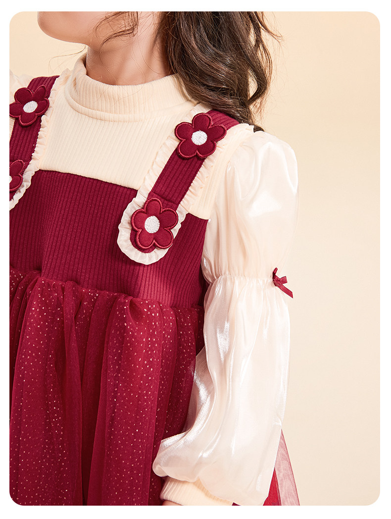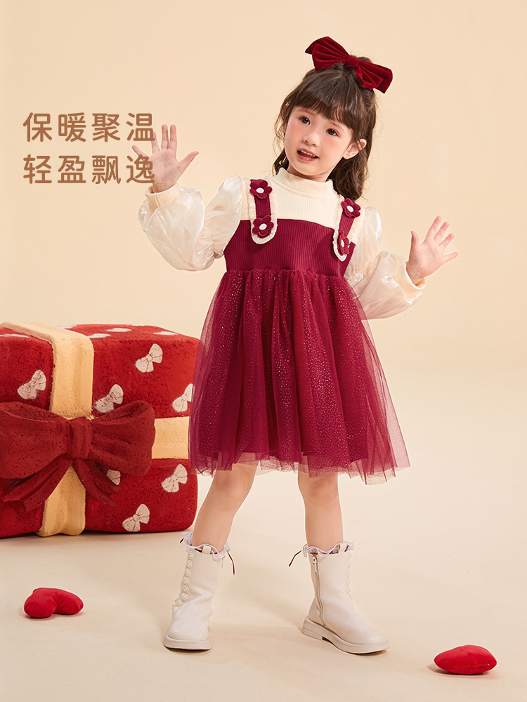 Красный осенний весенний наряд маленькой принцессы, осенняя юбка, детское платье с рукавами