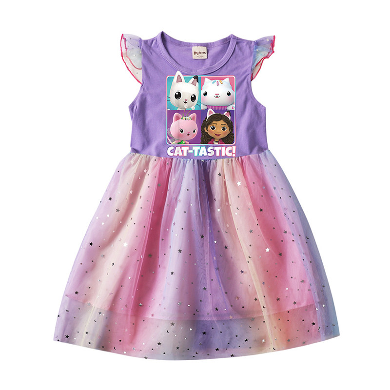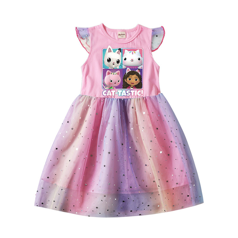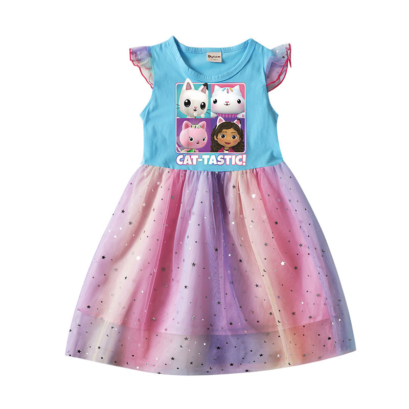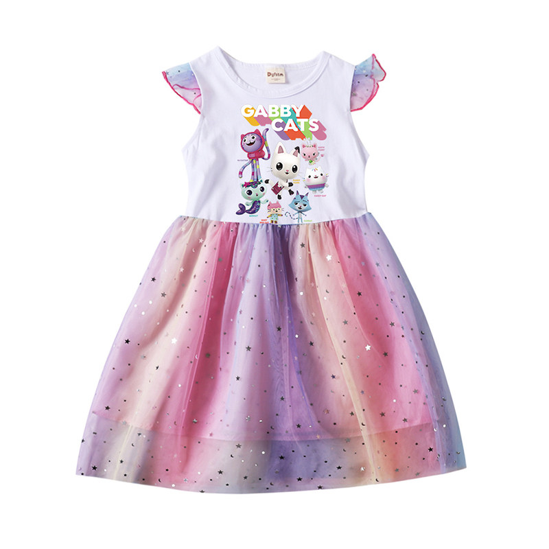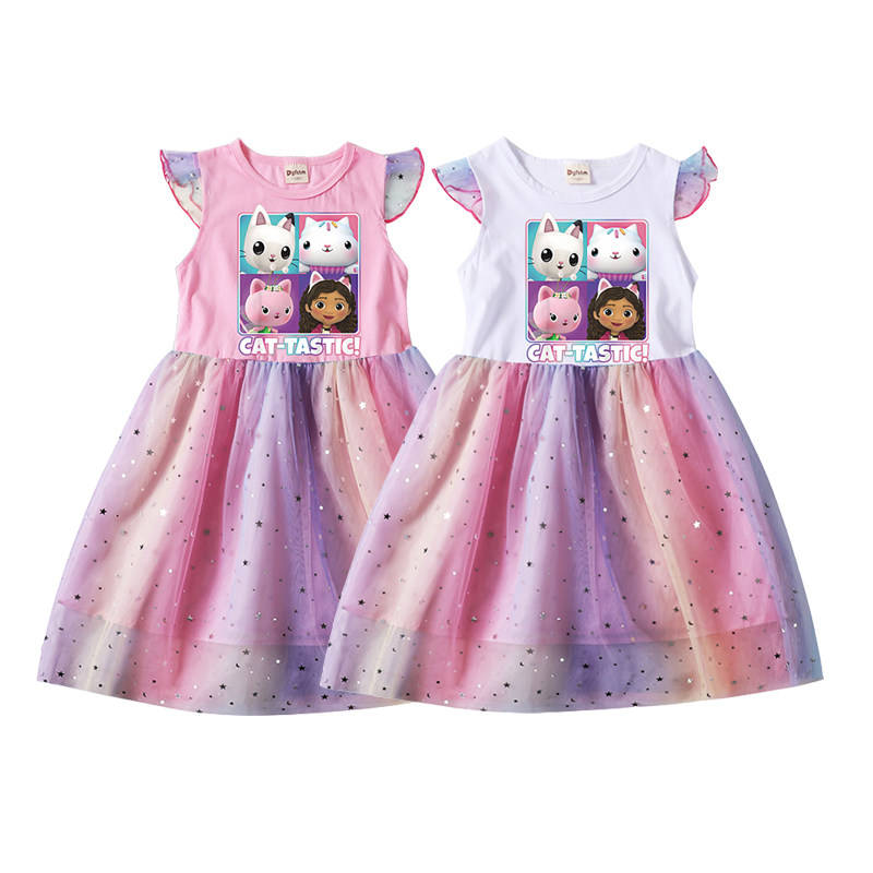 Хлопковое летнее платье, легкая и тонкая мультяшная юбка, из фатина