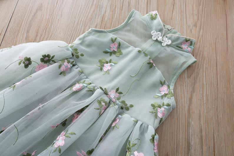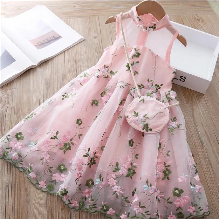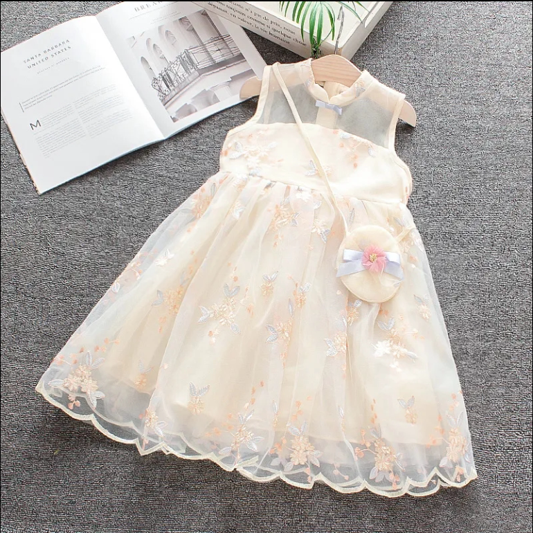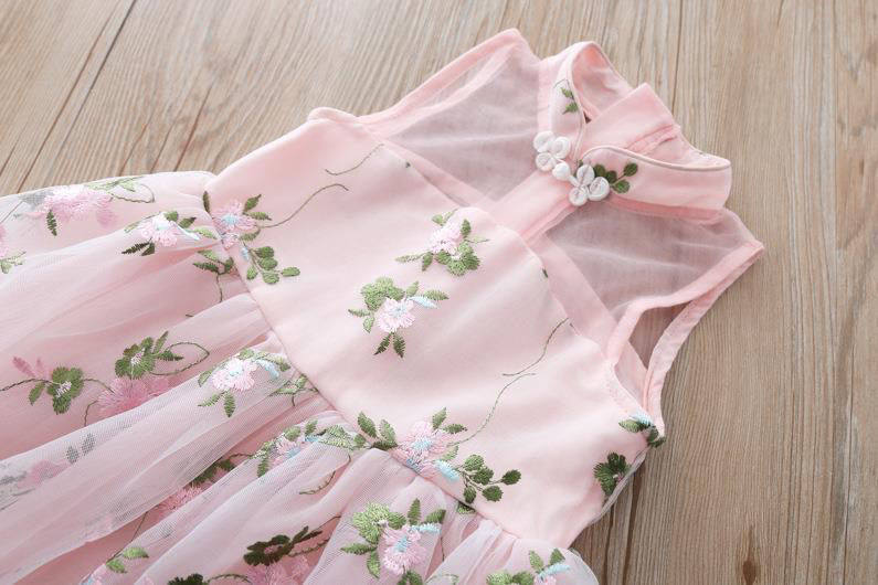 Детское платье, ханьфу, летнее ципао для девочек, летний наряд маленькой принцессы, цветочный принт