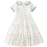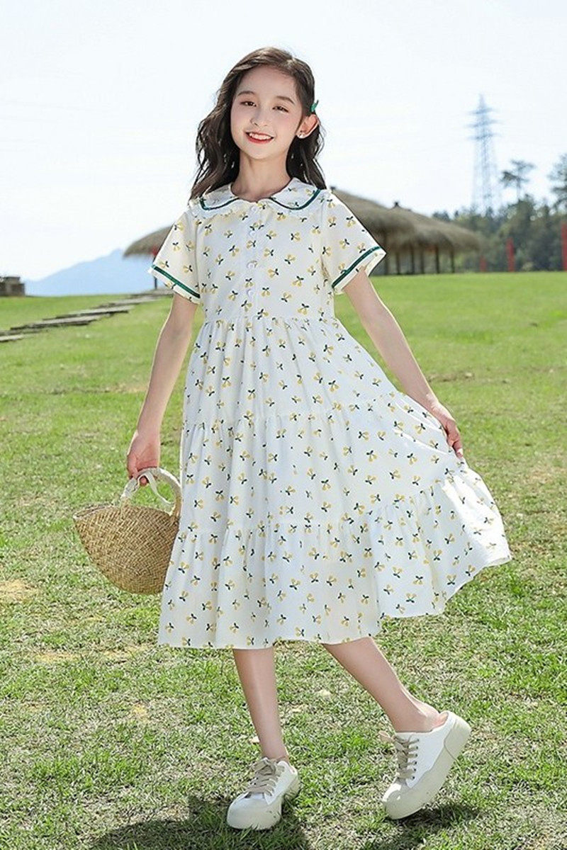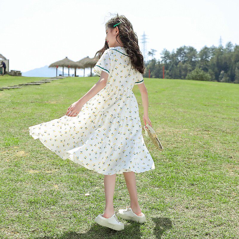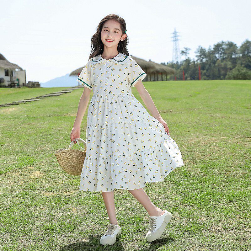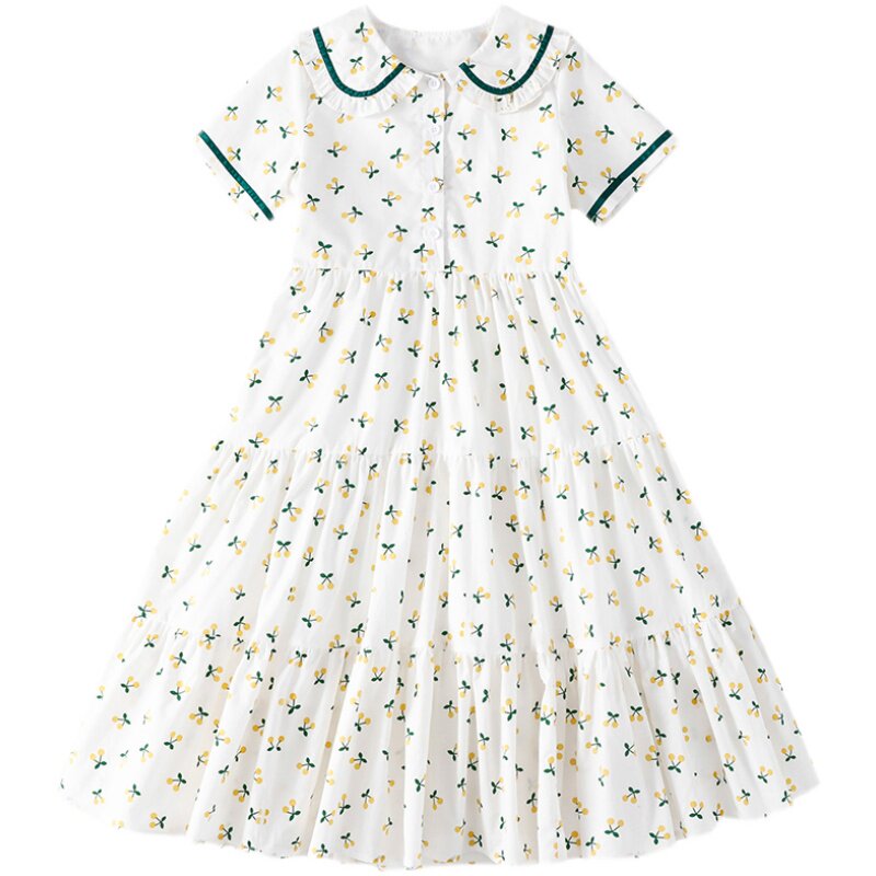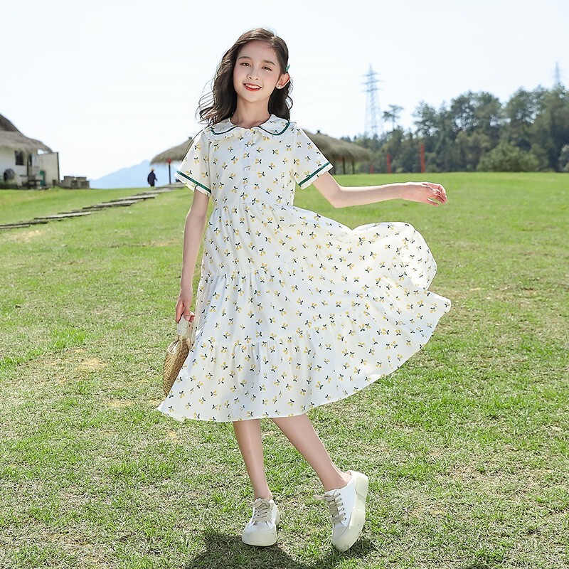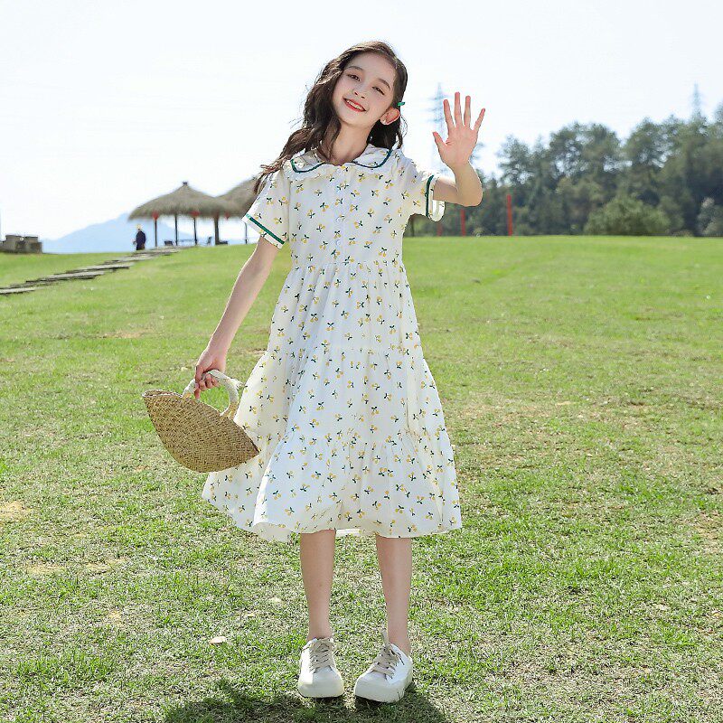 Летнее платье, юбка, тонкий детский наряд маленькой принцессы, подходит для подростков, в западном стиле, цветочный принт, А-силуэт, короткий рукав