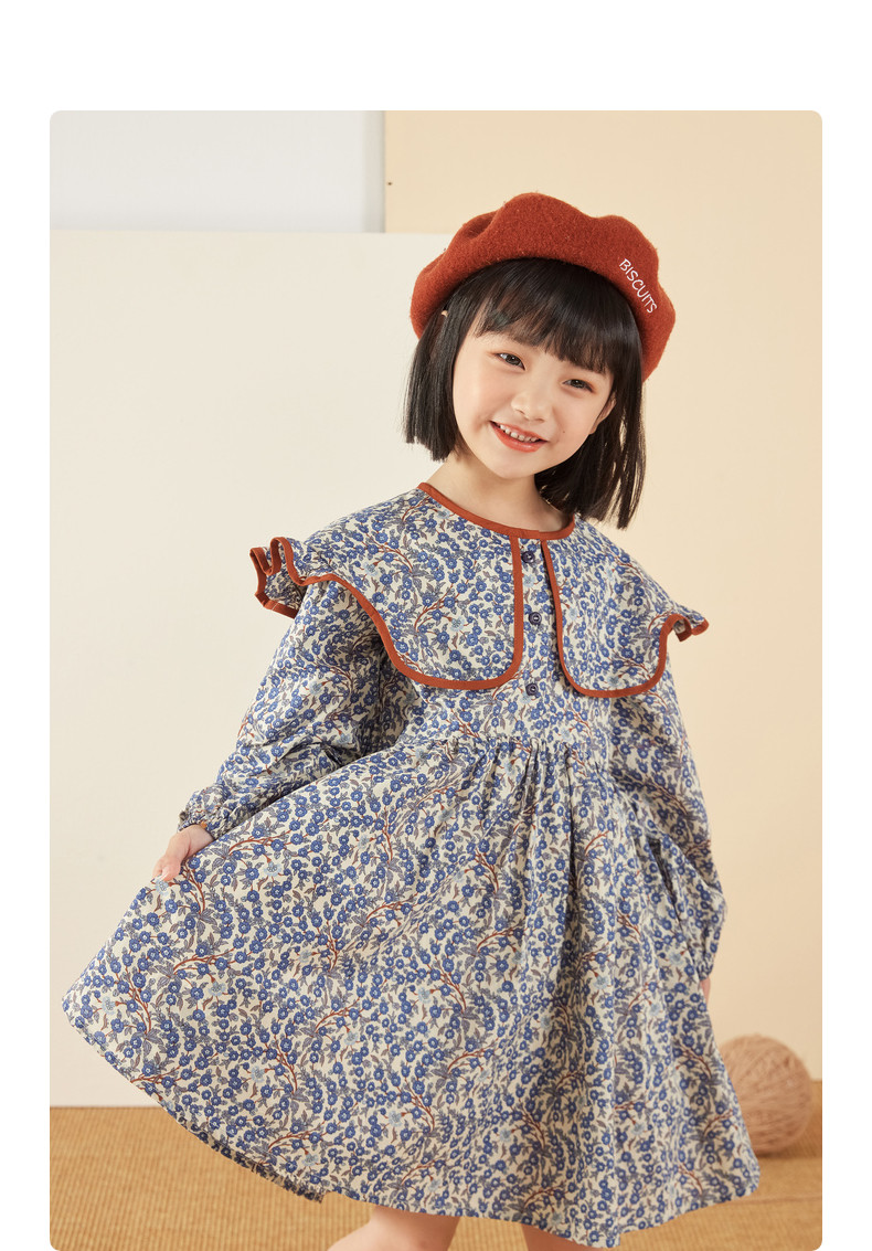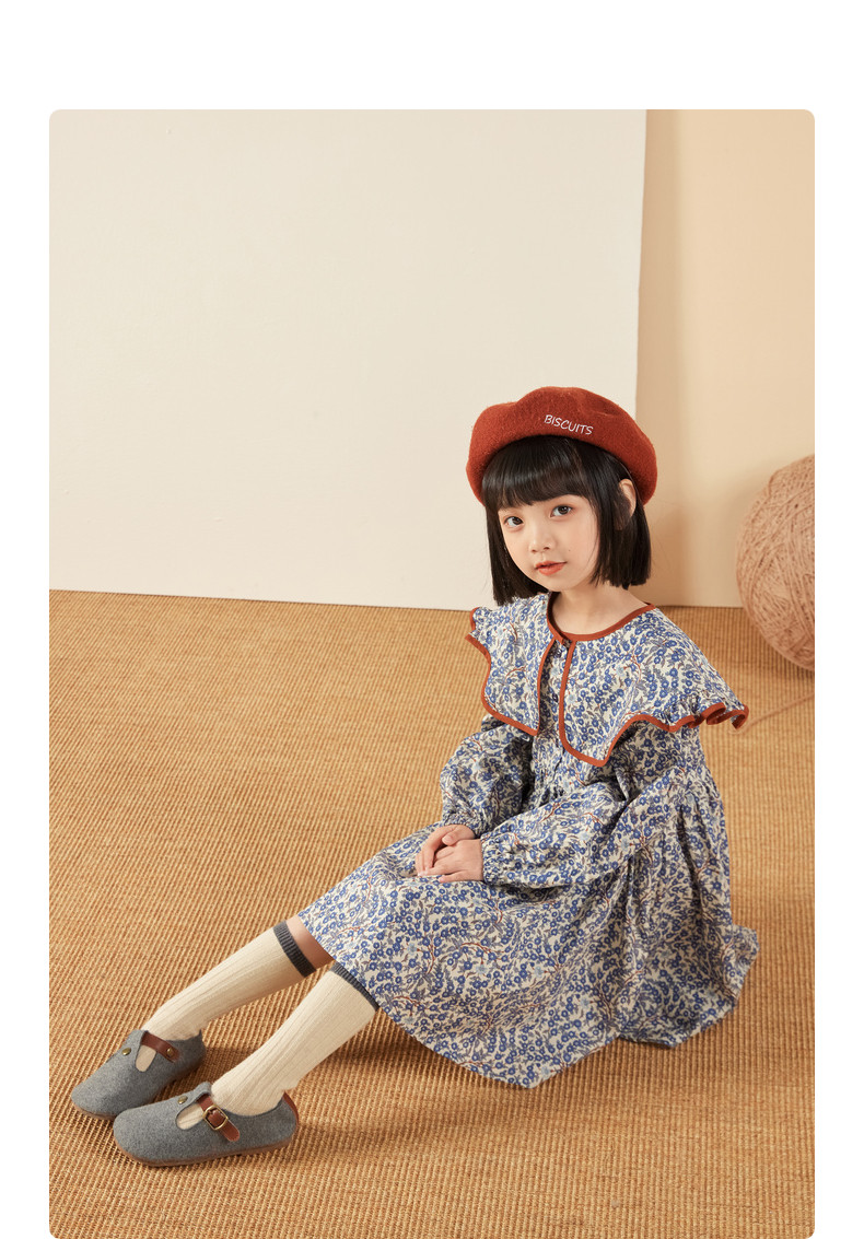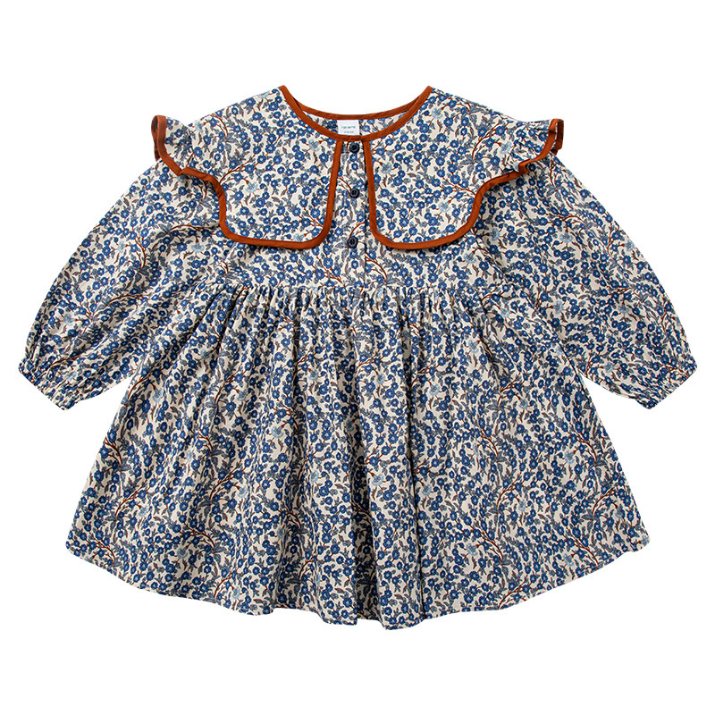 Осеннее платье, осенняя детская длинная юбка, детская одежда, цветочный принт, подходит для подростков, в корейском стиле