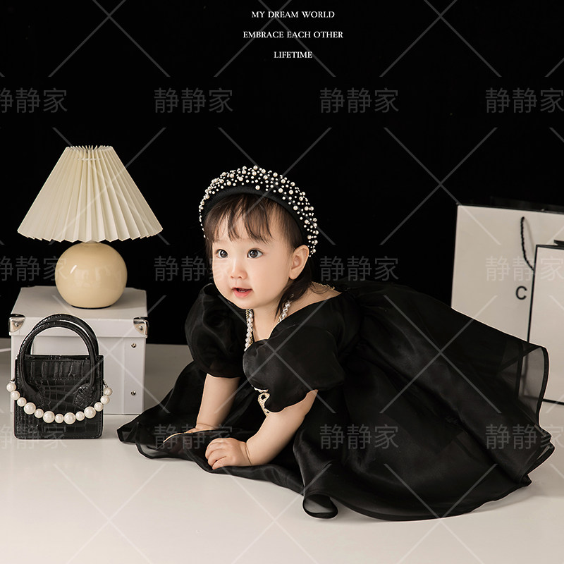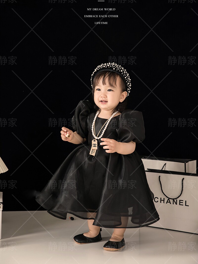 Черный наряд маленькой принцессы, платье, реквизит для фотографии, подарок на день рождения, в стиле Шанель
