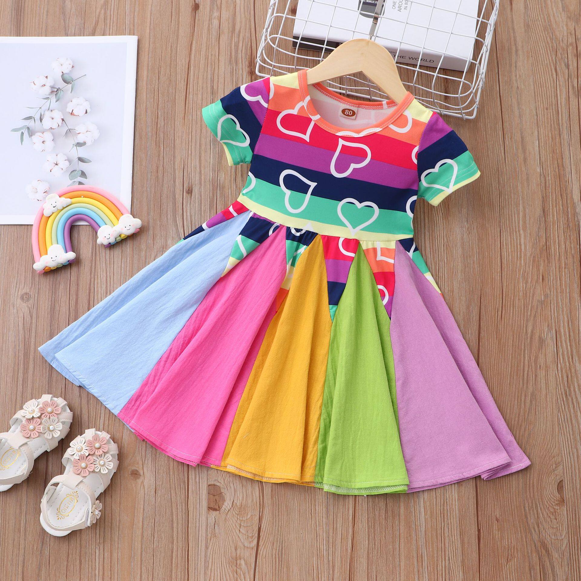 Летний милый радужный динозавр, платье, в корейском стиле, новая коллекция, короткий рукав