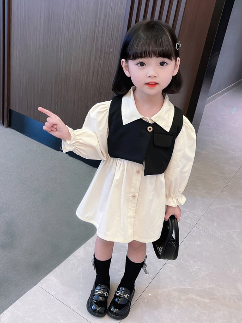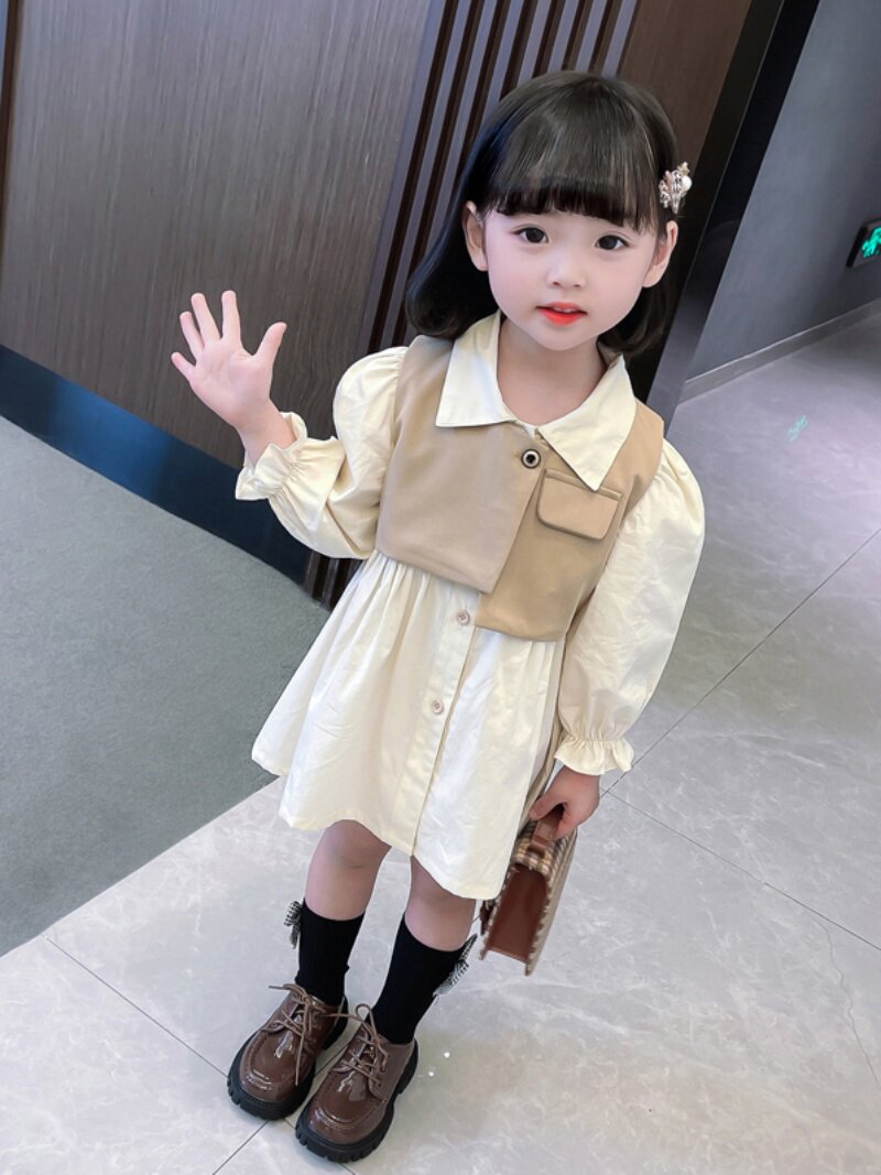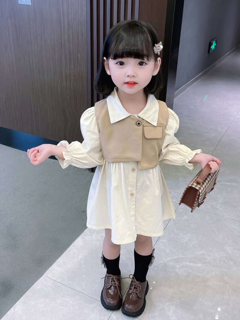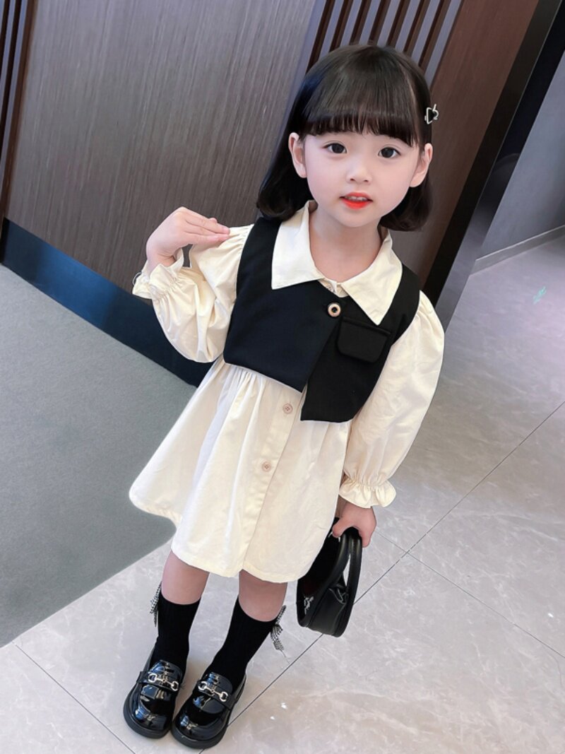 Осеннее платье для девочек, осенний детский комплект, лонгслив, в западном стиле