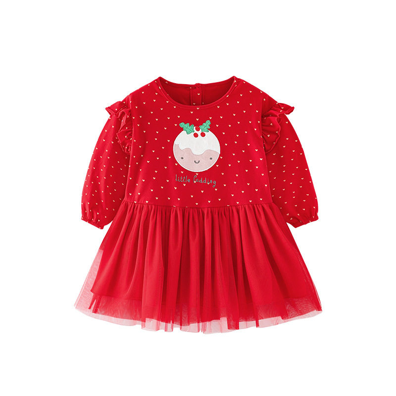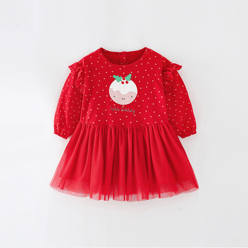 Красный осенний модный хлопковый детский лонгслив, платье, в западном стиле