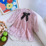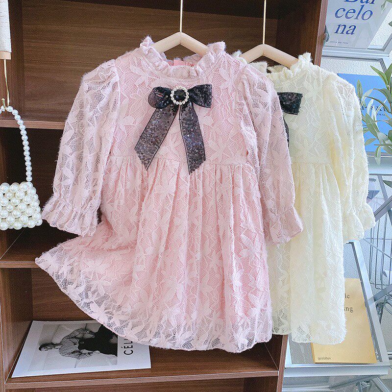 Осеннее платье с бантиком, кружевной лонгслив для девочек, наряд маленькой принцессы, юбка, в западном стиле