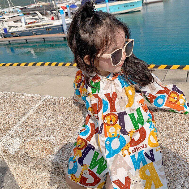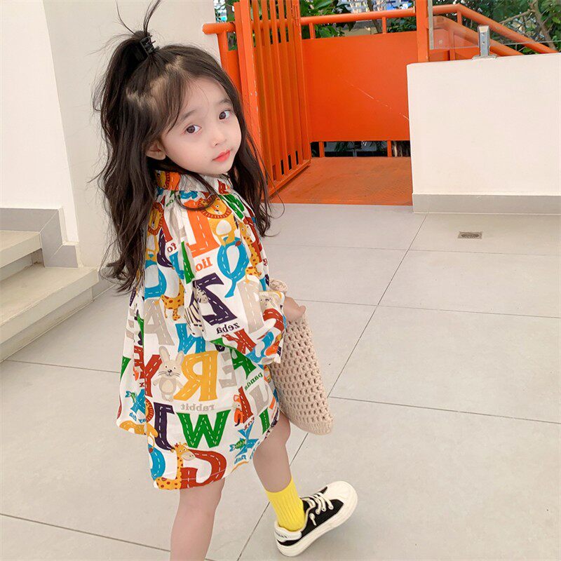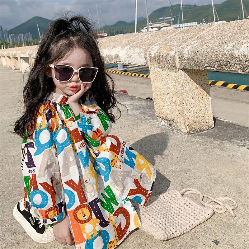 Хлопковое весеннее осеннее платье для отдыха, рубашка для девочек, юбка