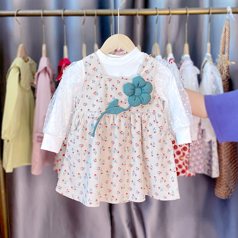 Наряд маленькой принцессы, осеннее платье, свежая юбка на девочку, детский комплект, цветочный принт, наряд на выход, осенний сезон