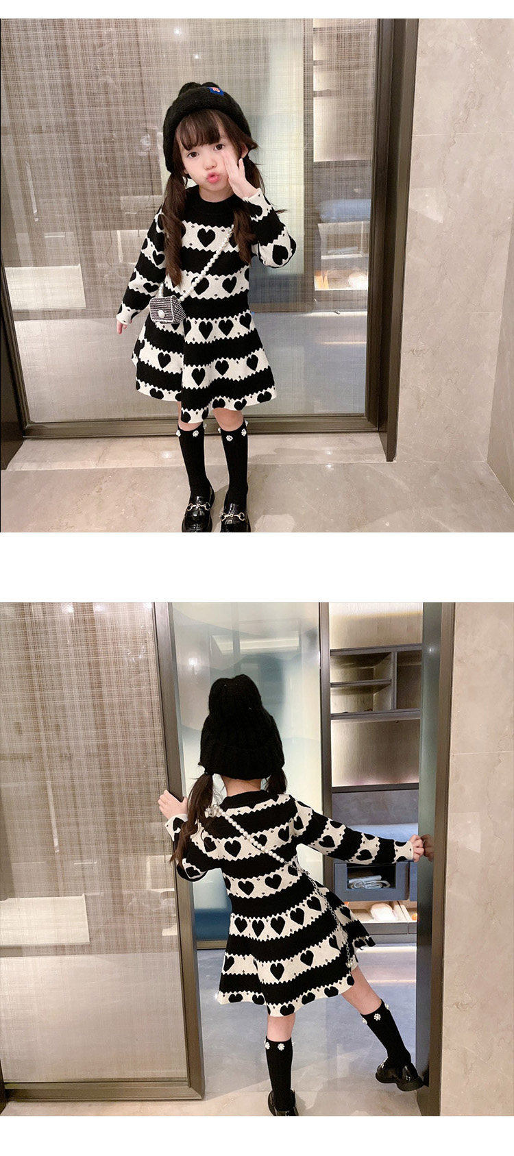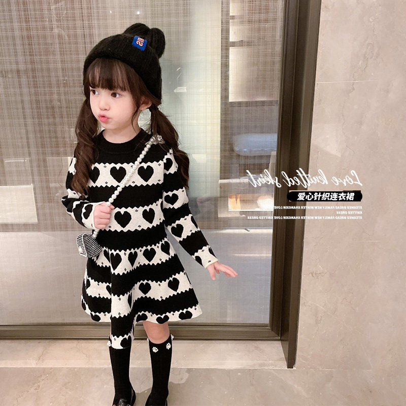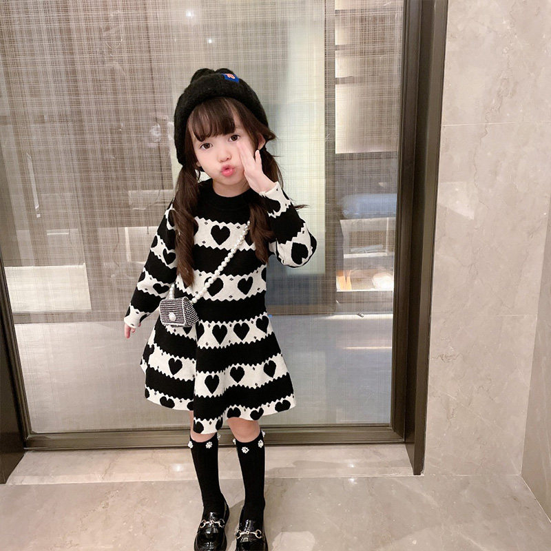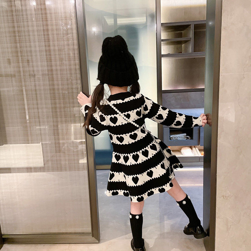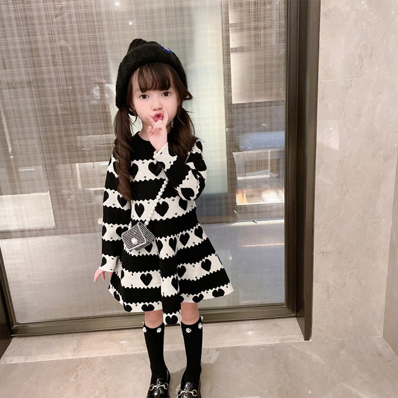 Осеннее трикотажное платье, детское базовое шерстяное платье, лонгслив, длинная юбка, в западном стиле, оверсайз