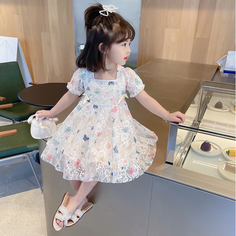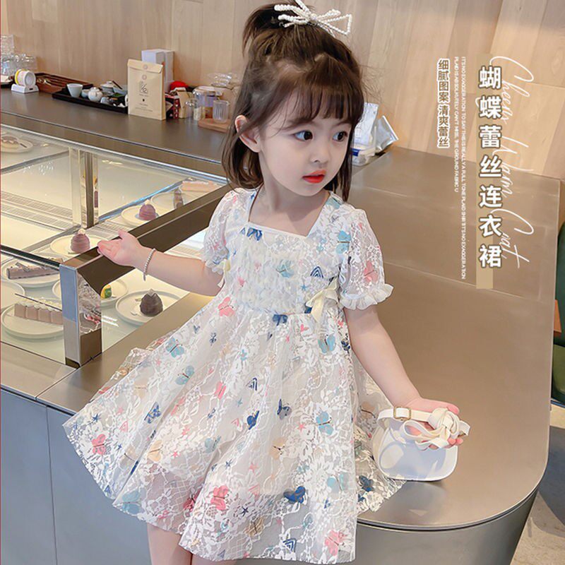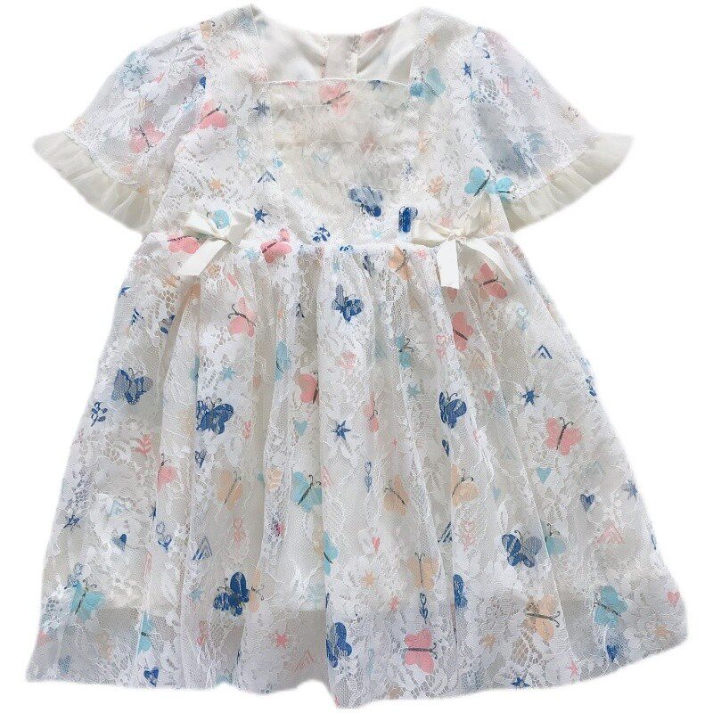 Летний наряд маленькой принцессы, летняя одежда, кружевное платье, короткий рукав, в корейском стиле, в западном стиле