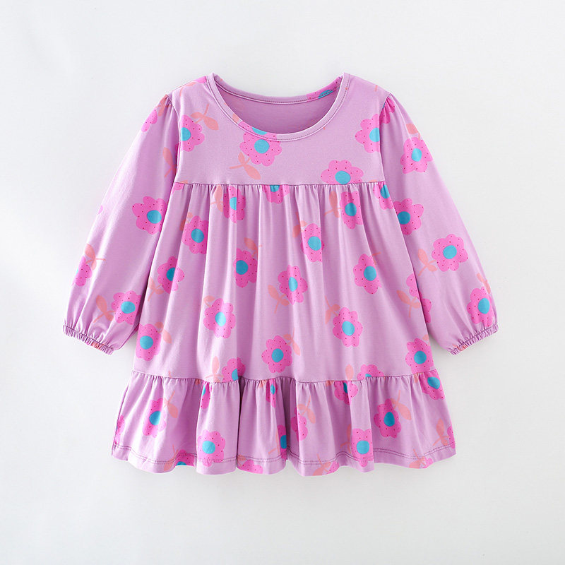 Хлопковый лонгслив, мягкая юбка на девочку, детское платье-футболка, тонкий наряд маленькой принцессы, в цветочек, 5 лет