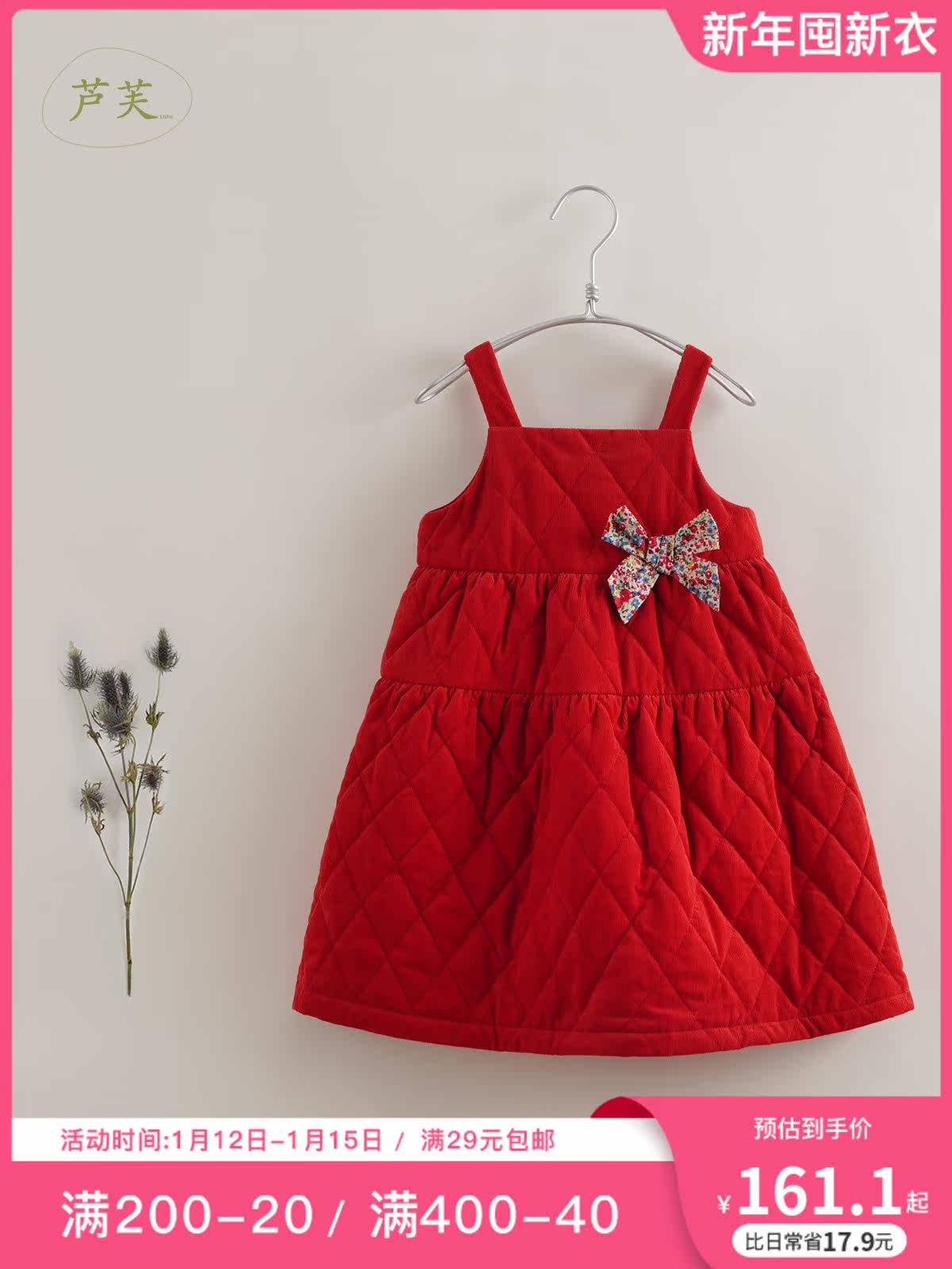 [Марк Дженни Луфу] Основная бархатная юбка для девочек Хлопковая ремешок для ремня Новый год Зима 221305