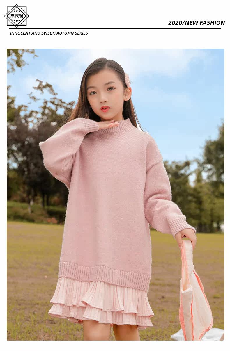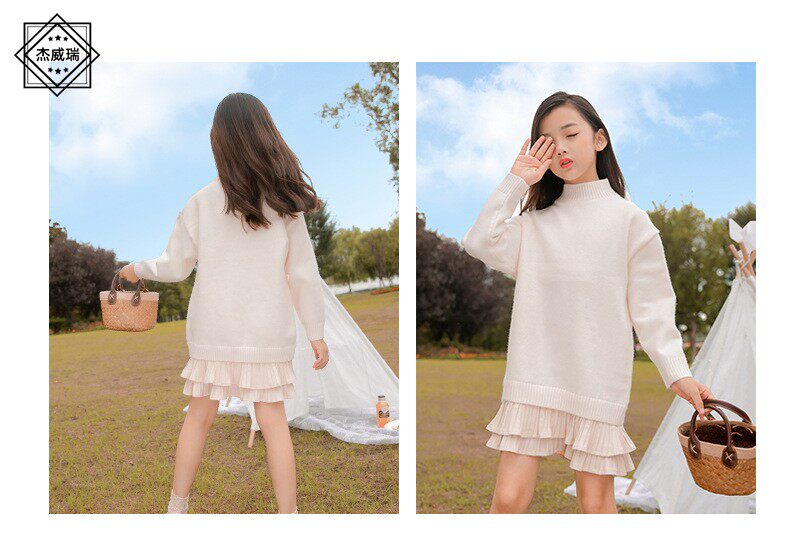 Осеннее шерстяное платье, юбка, длинный детский базовый свитер, подходит для подростков, средней длины, увеличенная толщина