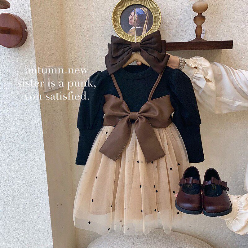 Комплект, весеннее платье, осенний лонгслив для девочек, наряд маленькой принцессы, юбка, в западном стиле
