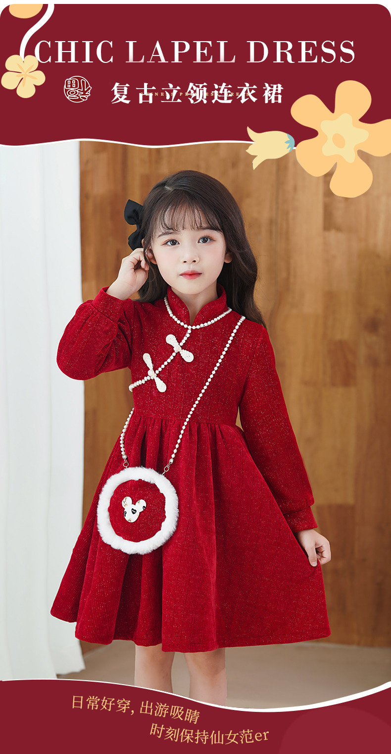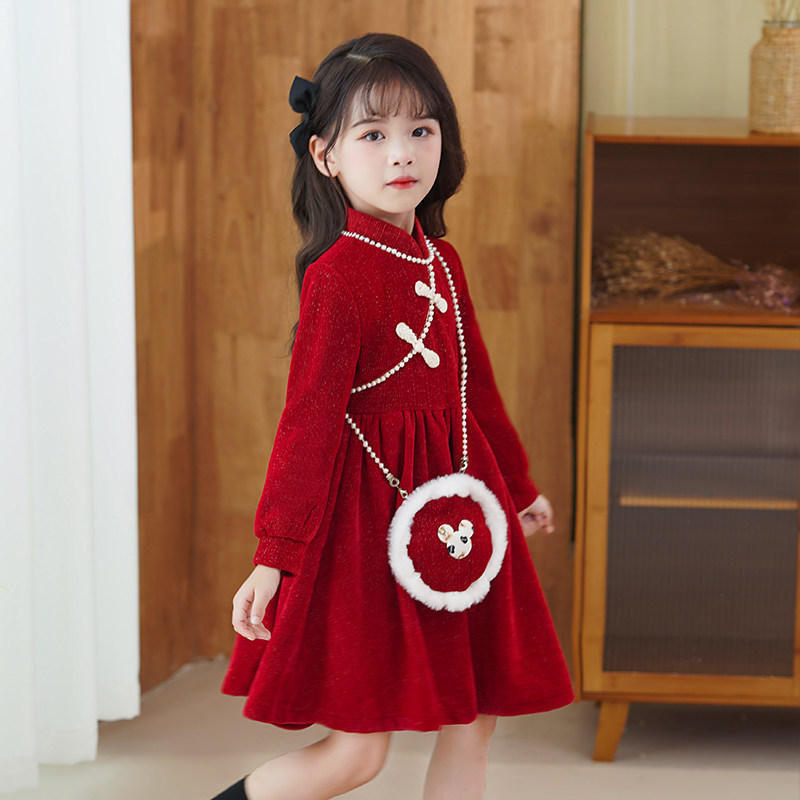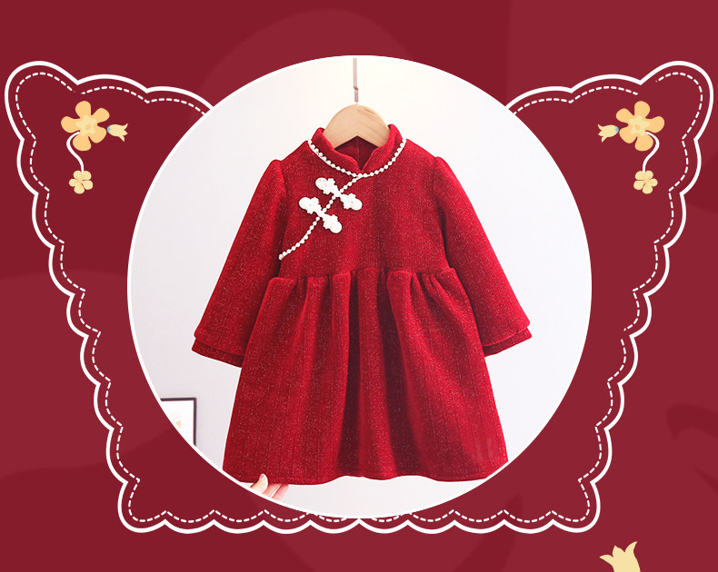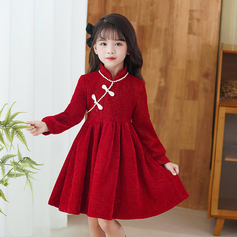 Демисезонный пуховик, флисовое платье, юбка, красный наряд маленькой принцессы, зимнее ципао