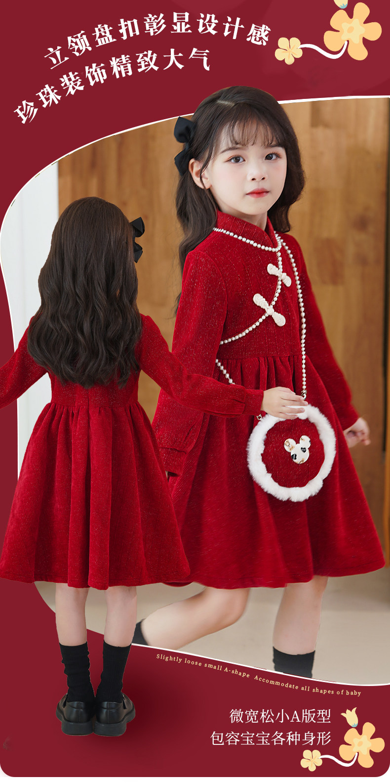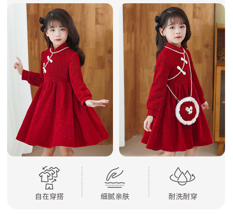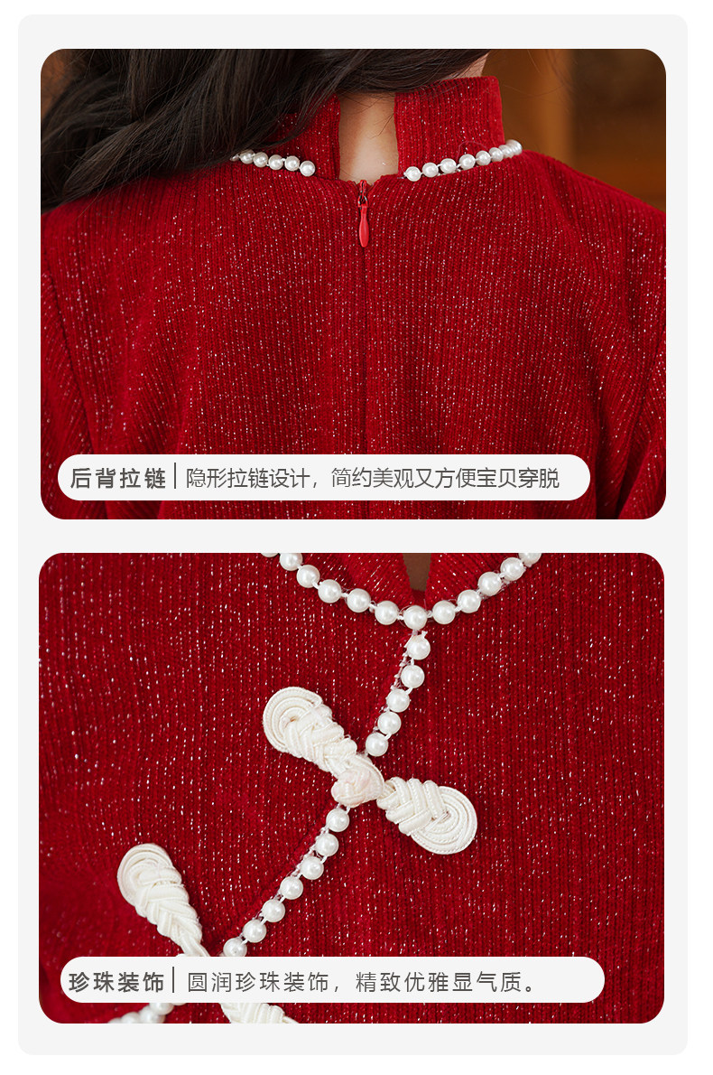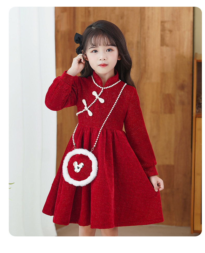 Демисезонный пуховик, флисовое платье, юбка, красный наряд маленькой принцессы, зимнее ципао