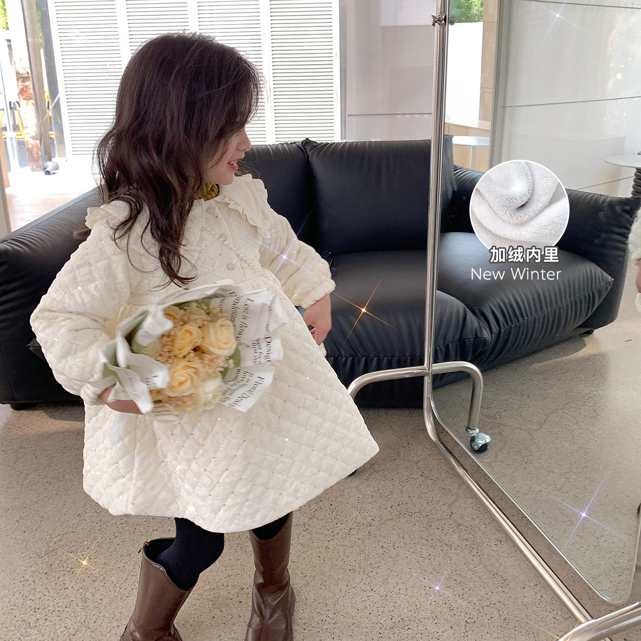 Кукла, белое платье с ромбовидным узором, детская юбка, пуховик, лонгслив
