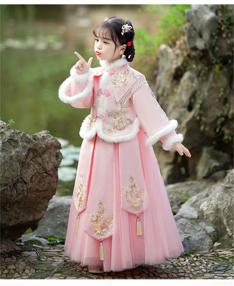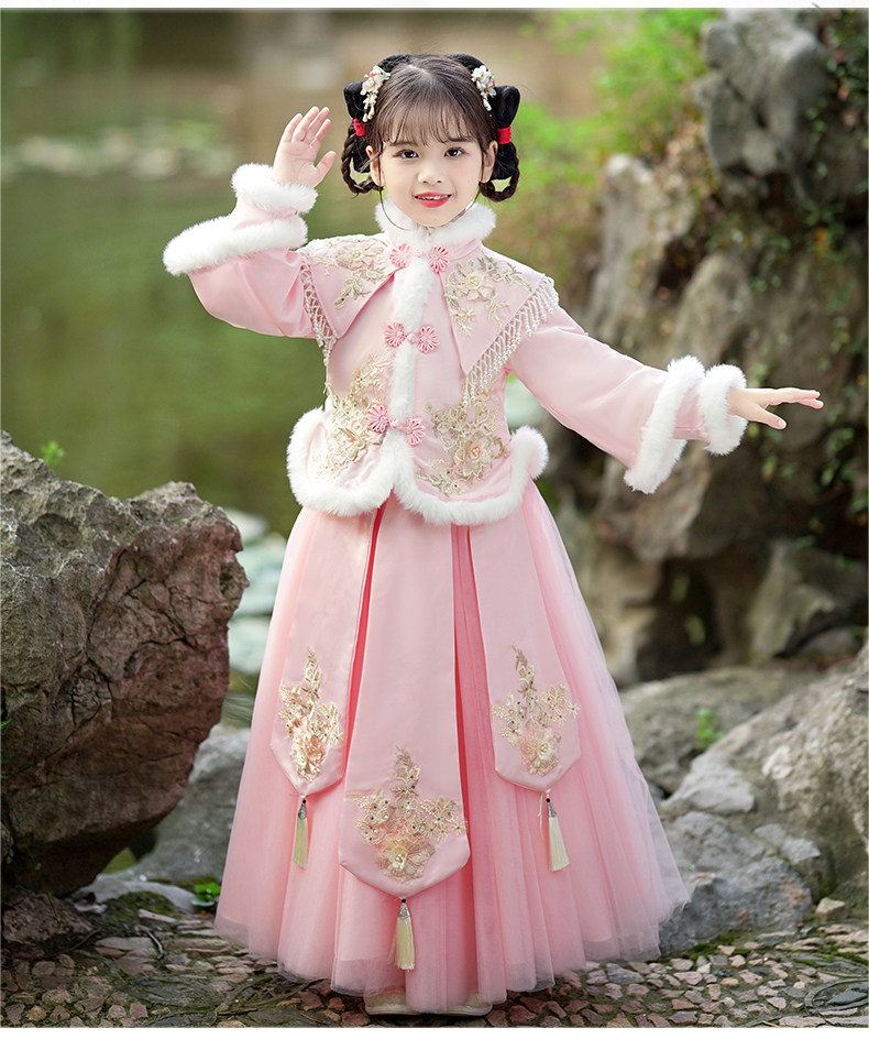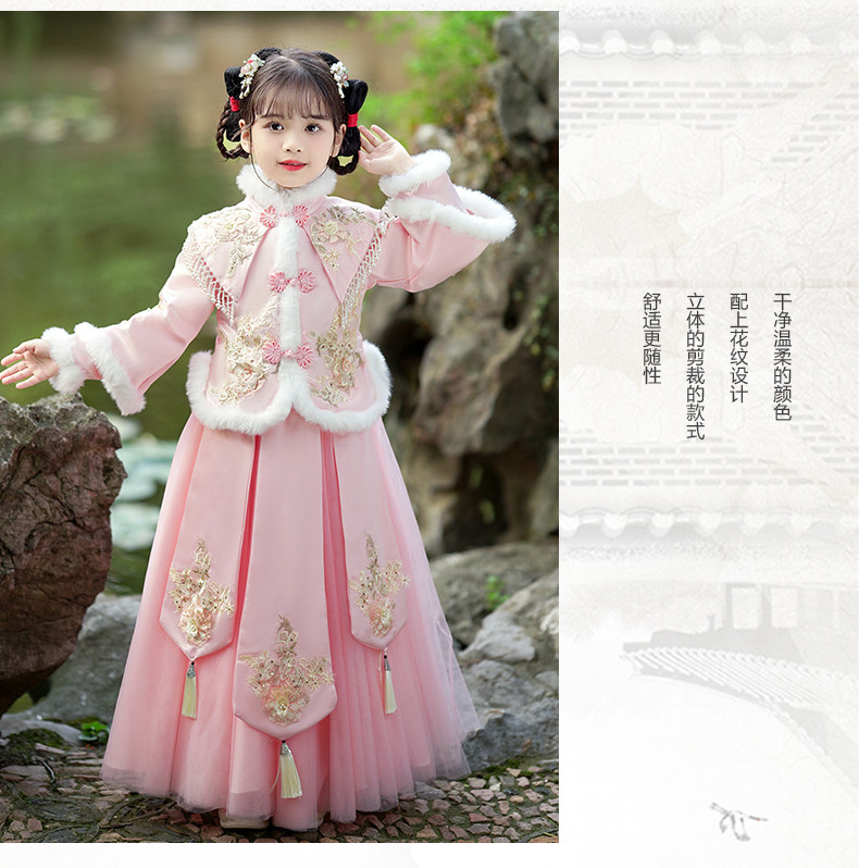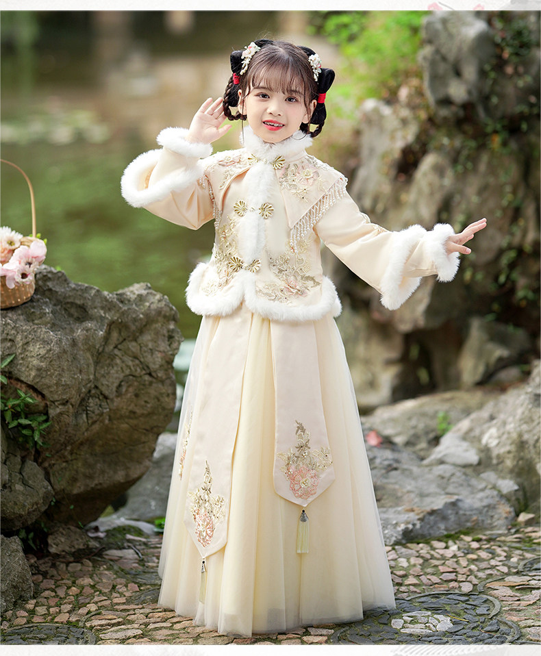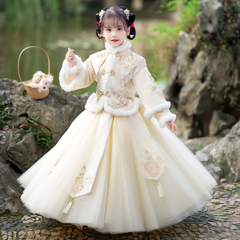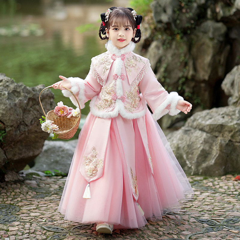 Зимнее ханьфу, демисезонный флисовый наряд маленькой принцессы, пуховик, платье, юбка