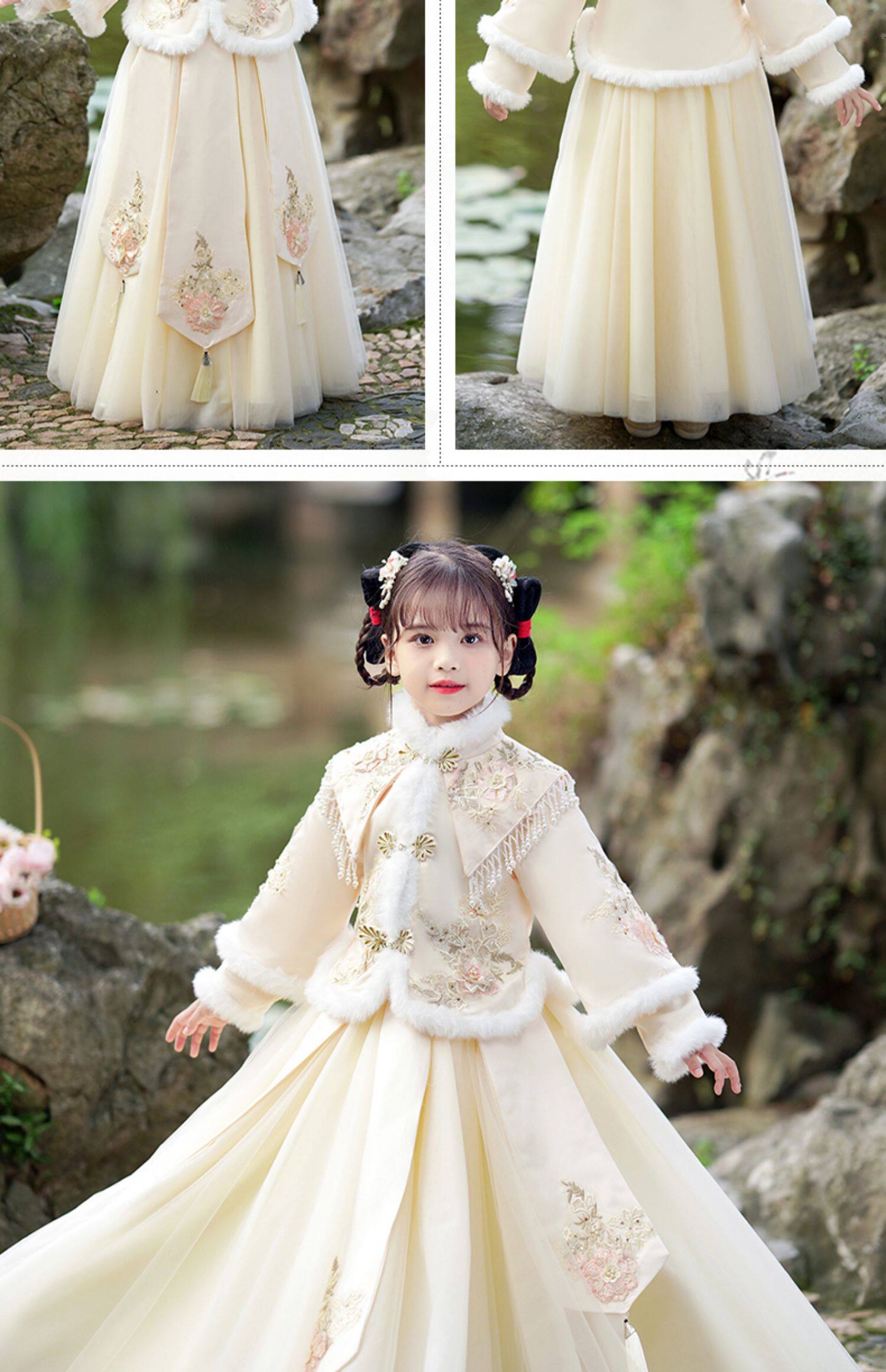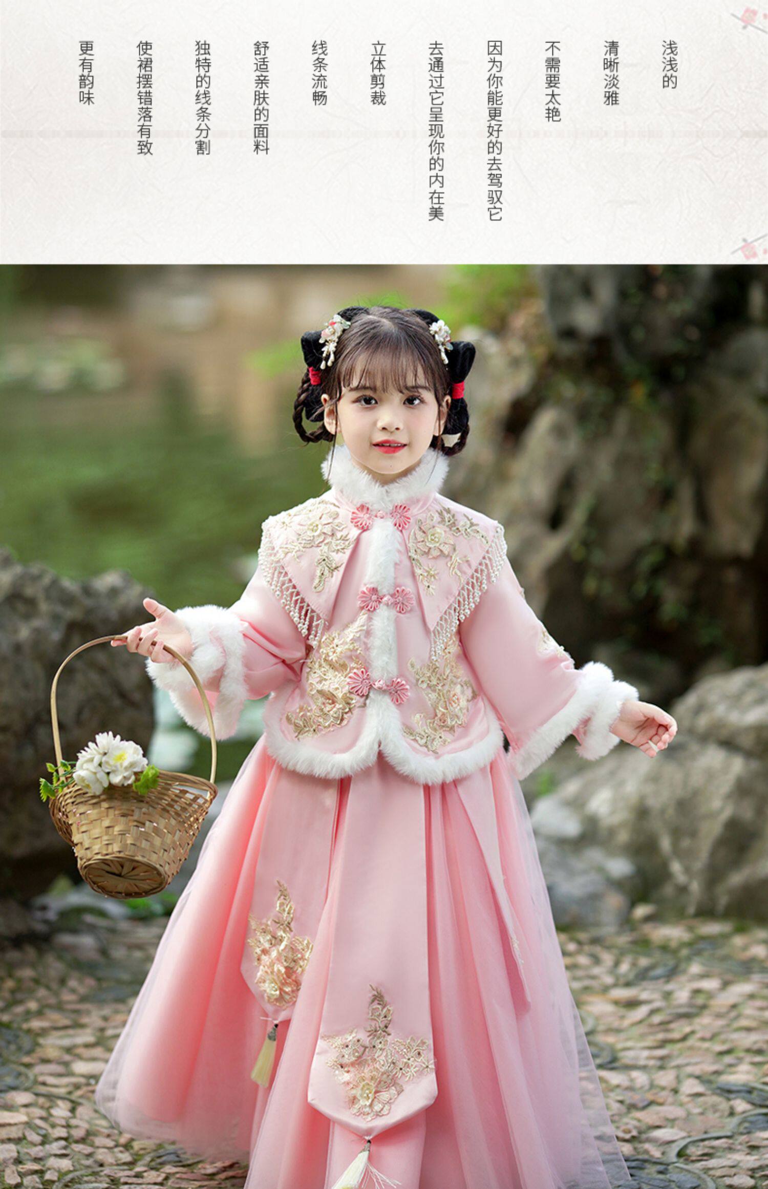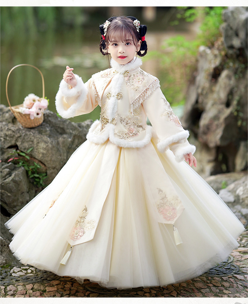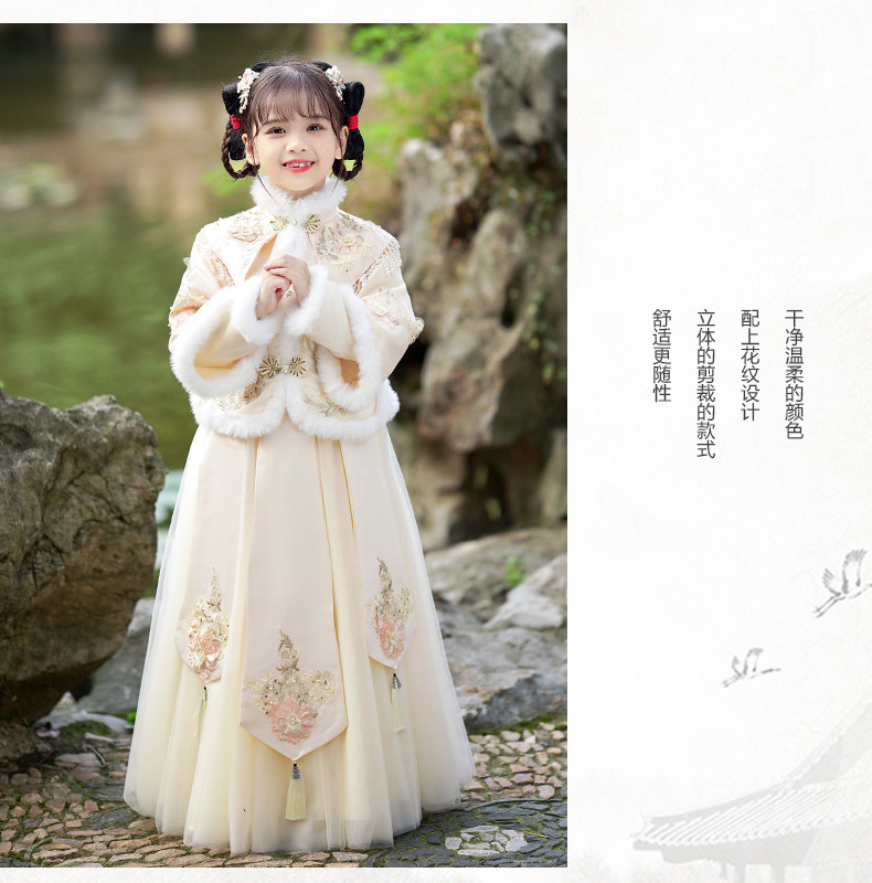 Зимнее ханьфу, демисезонный флисовый наряд маленькой принцессы, пуховик, платье, юбка