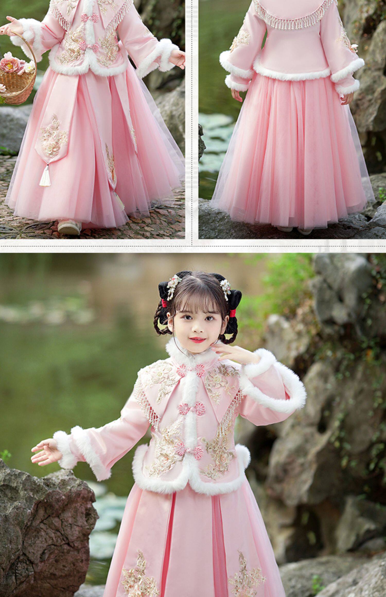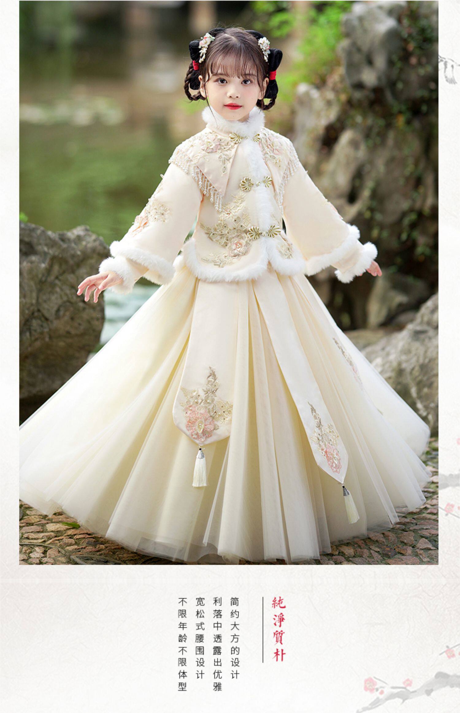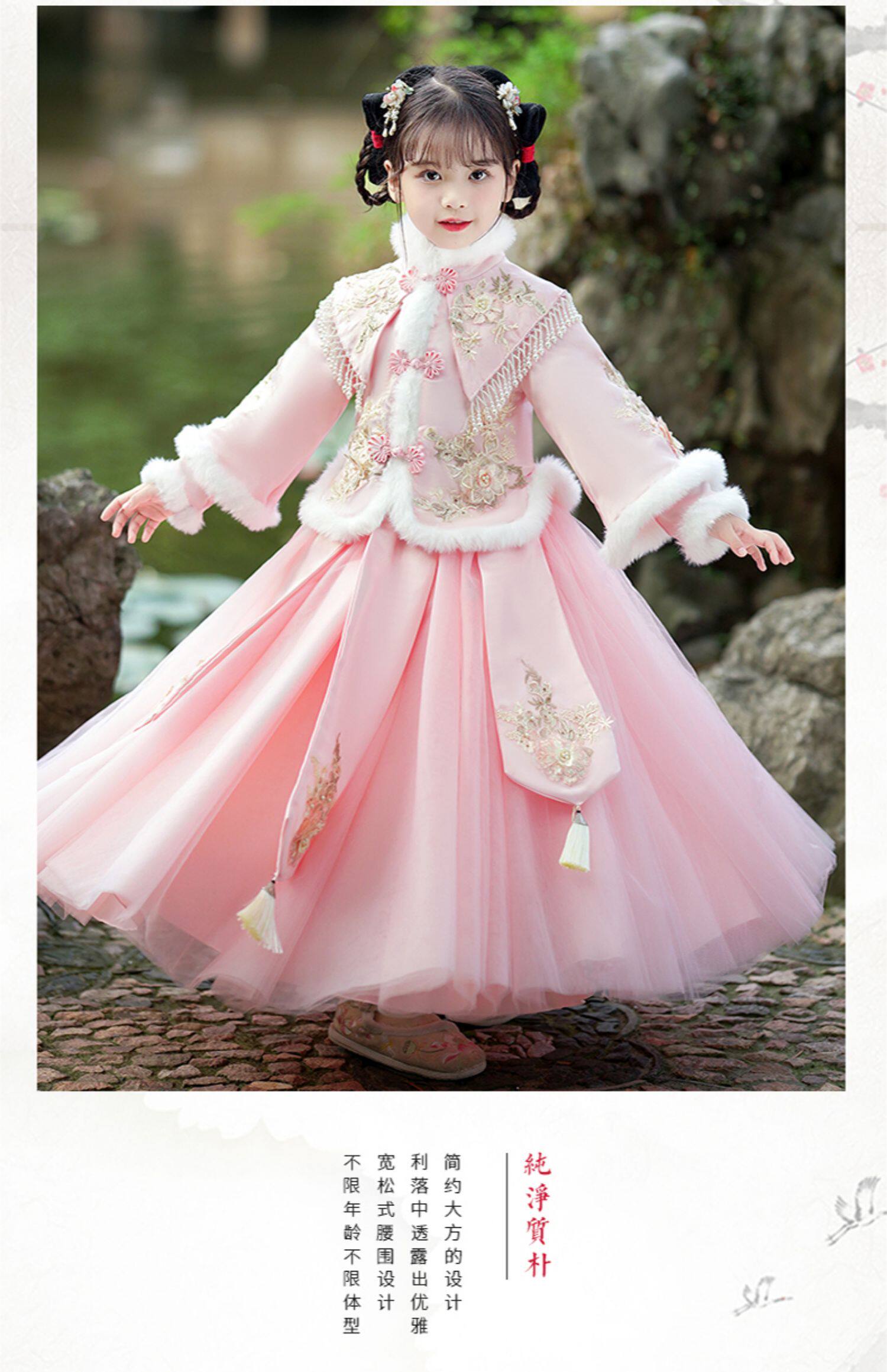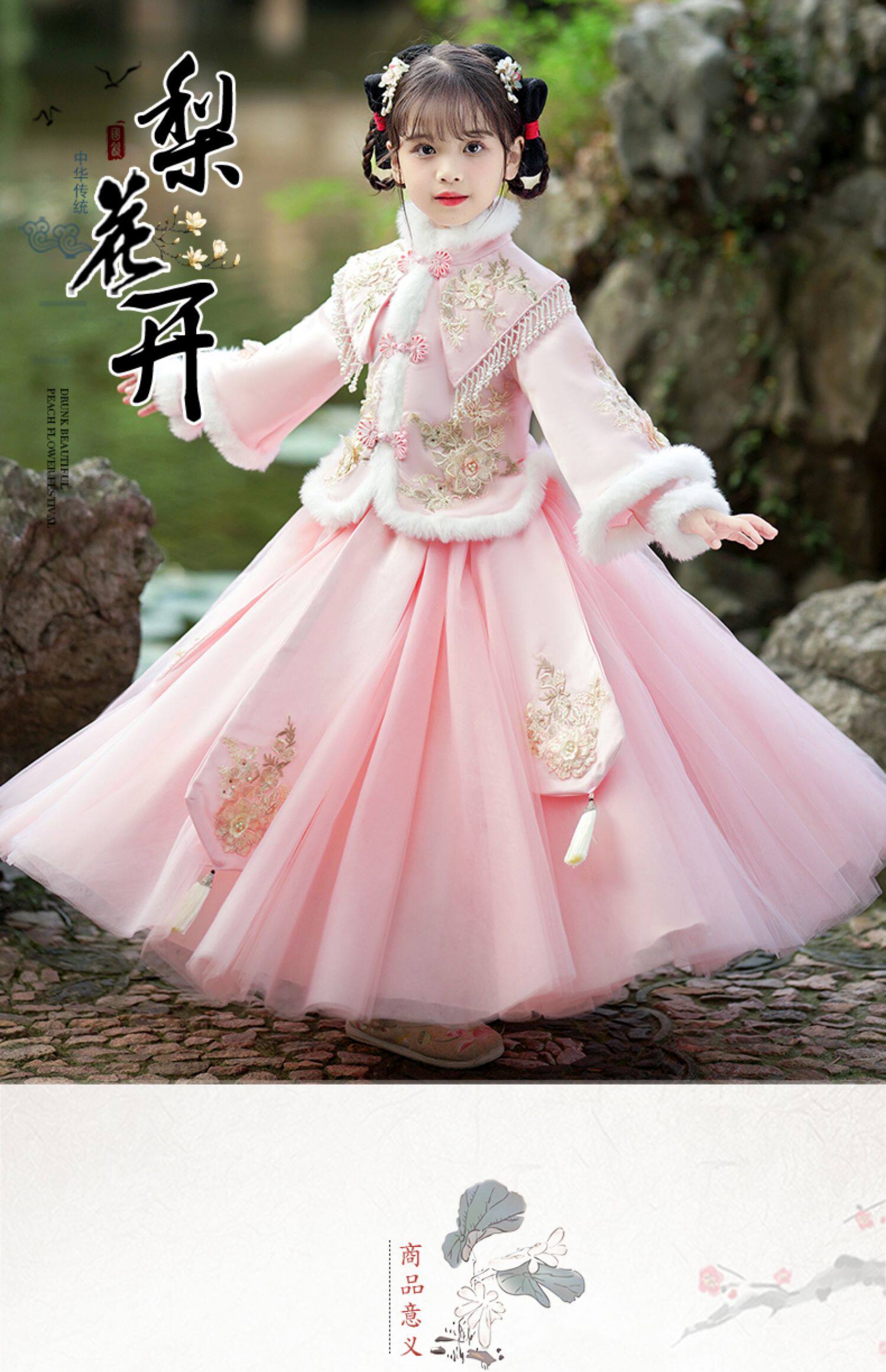 Зимнее ханьфу, демисезонный флисовый наряд маленькой принцессы, пуховик, платье, юбка